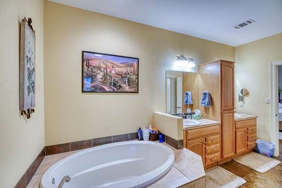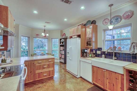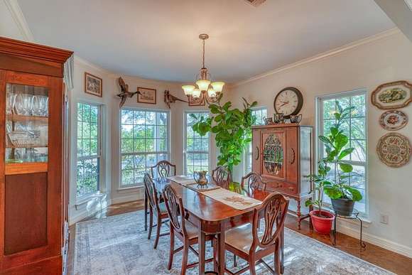 Discover the charm of country living at 305 CR 103 in Lampasas, Texas. This expansive 12+/-acre property features a cozy, well-maintained home that's ideal for those seeking a blend of country living with modern comforts. Enter the property down a short winding drive leading to the classic country farmhouse style home with covered front and back porches set among large oak and other native trees. Inside, you will find a traditional floor plan. The large bright entry hall leads to the dining room and living area. The dining room is large enough for your favorite china cabinet and table. The living area features a lovely wood-burning fireplace and views of the beautiful landscape and covered pavilion with outdoor stone fireplace. The kitchen features nice cabinets and a farmhouse sink. The breakfast area has bay windows overlooking the beautiful tree covered back yard. The cozy primary bedroom located downstairs offers an ensuite with double vanities, walk-in shower, and large soaking tub. Upstairs features three bedrooms, two baths (1 is an ensuite) and lots of storage. The upstairs bonus/flex room is perfect for whatever your family may need - media room, game room, playroom you decide. The tree cover and serene hill country views make this one of the most beautiful properties in Burnet County. Enjoy the convenience of highway access to Burnet and Lampasas, while savoring the peace and space of your own private acreage. More land available.