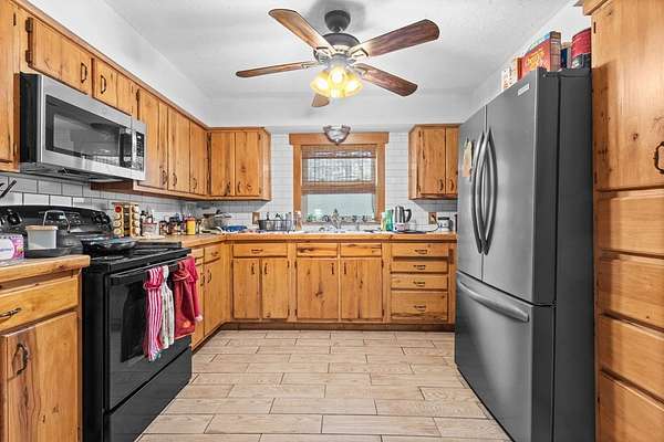 - Blinds, Ceiling Fans, Electric Range, Living Room, Microwave, Washer, Wood Cabinets, w/ Hookups
