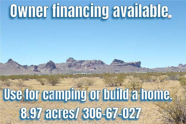 Est $217/moGreat place to bring the horses, goats and chickens and live off the land. Plenty of space for a large garden, workshop and your home. Offers almost 9 acres not to far off of a paved road. Owner financing is available with 30% down at 8% and the length is negotiable. Drive by and view anytime. No timeframe for use. No hoa fees. Come on out and explore the desert.