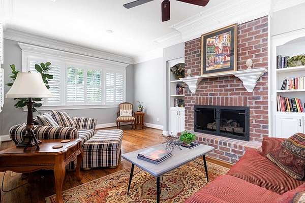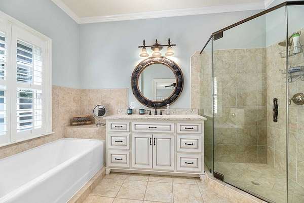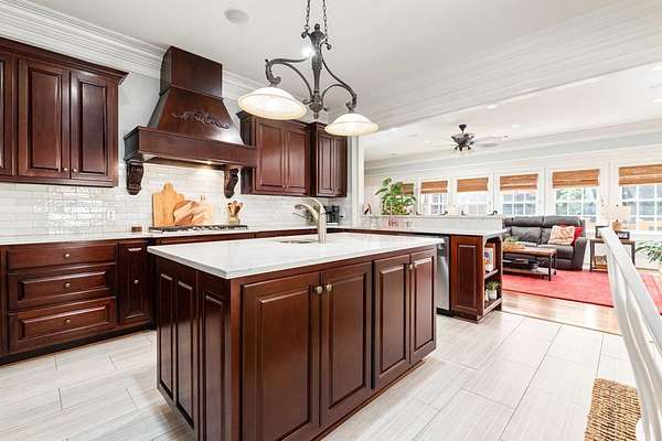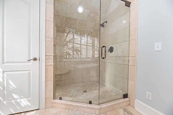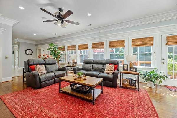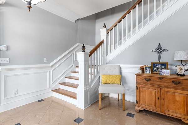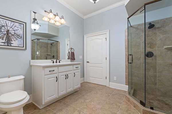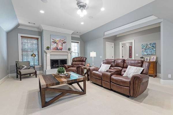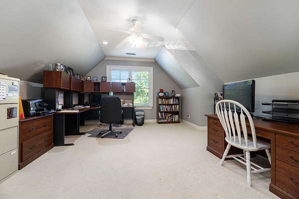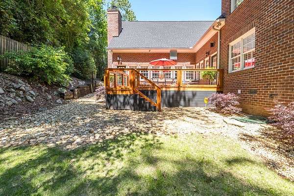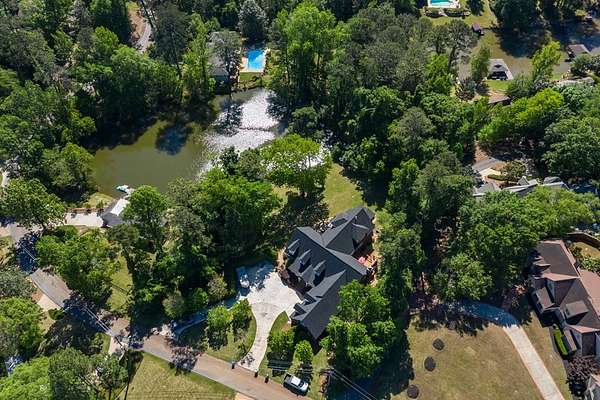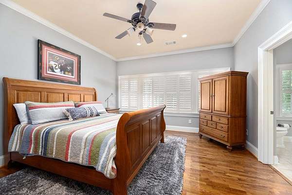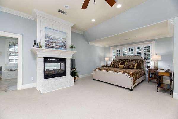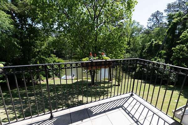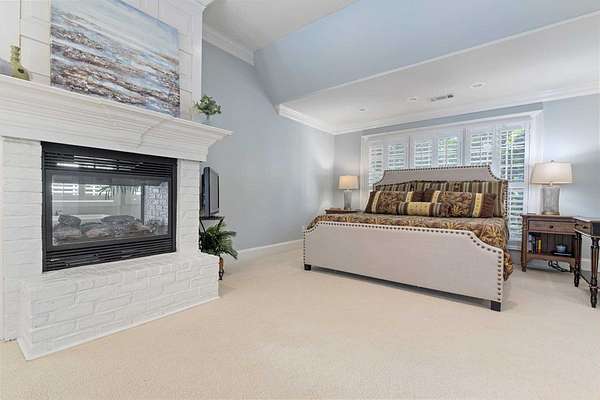 Custom-built home. Winding staircase & grand foyer. Huge master suite with his & hers bathrooms, FP in bedroom & her bath, updated bath with soaking tub, quartz countertops, separate shower & balcony overlooking pond. Three large walk-in closets in master area. All ensuite bedrooms except one Jack & Jill. One BR being used as office. A possible second master suite is on the main level. Lots of deep crown molding & trim. Large workout room with wet bar & cabinets. Media room with large built-in TV, stereo surround sound & FP. Sunroom overlooking pond & deck. Kitchen with upgraded solid mahogany cabinets, large walk-in pantry, new tile floor & quartz countertops. Fresh neutral paint throughout. Plantation shutters in most of home. Basement has privacy & could be 6th bedroom with ensuite bath & unbelievable amount of storage. Screened porch with doggie door to fenced area. Large laundry room with lots of cabinets, folding counter & sink. Elevator to 2nd floor. Matterport Tour: