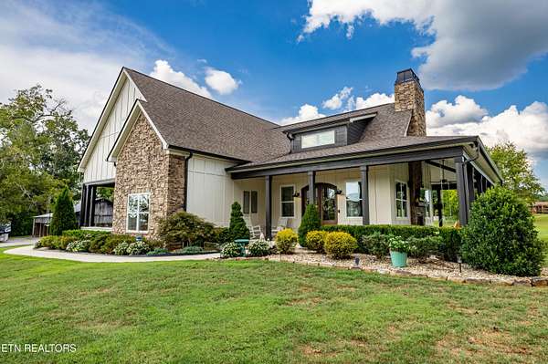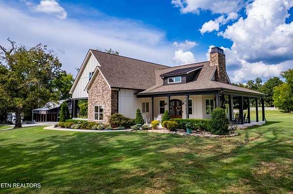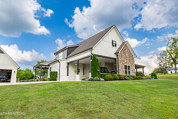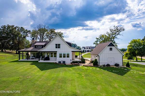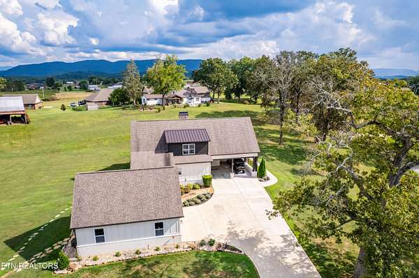One-of-a-kind craftsman farmhouse, thoughtfully designed and custom built by a reputable local builder for his parents. No detail overlooked or left undone! This 3-bedroom, 2.5-bath home sits on 4 private acres with mountain views from the covered half wraparound porch. Step inside to soaring ceilings and an open floor plan, perfectly blending rustic charm with modern finishes-ideal for everyday living and entertaining. A built-in carport and detached two-car garage with storage above provide ample parking and utility space. The property also includes a barn, making it versatile for entertaining, hobbies, animals, or extra storage. Designed with gatherings in mind, this home offers warm, inviting spaces indoors and out. Rarely does a property with this level of craftsmanship and setting come to market-don't miss your chance to call it home. Four car garage foundation laid in the back with plans available upon request. 2 lots- another house can easily be built on this property. Upstairs plumbed for another bathroom and storage room would easily make a great bonus room or 4th bedroom. Encapsulated crawlspace, and very energy efficient home!