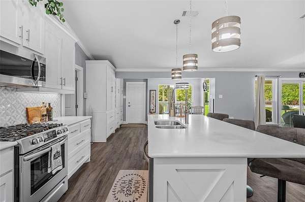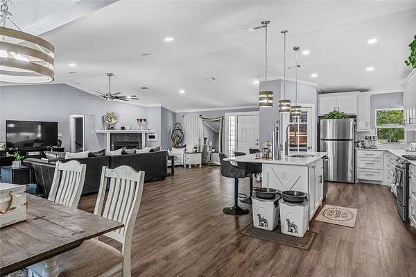 Step inside to find gorgeous quartz countertops throughout with the island plumbed already for a disposer if you wanted to add one. Waterproof luxury vinyl flooring in the main living areas, and warm neutral colors that create an inviting feel. The kitchen is truly stunning with abundant cabinetry, a walk-in pantry, a natural gas stove, and an open layout that flows seamlessly into the dining and living areas. Cozy up by the gas or wood-burning fireplace this winter with plenty seasoned firewood included and ready to go!