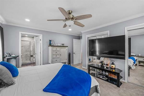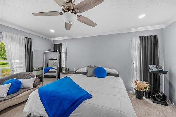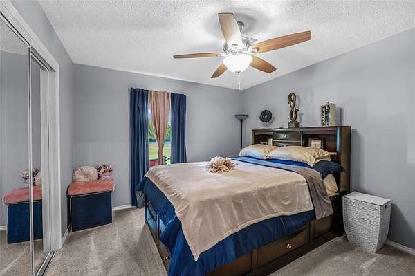 The spacious split-bedroom design ensures privacy. Guest bedrooms are generously sized, while the primary suite boasts a mirrored wall of closets, plus an additional oversized closet in the ensuite bathroom.