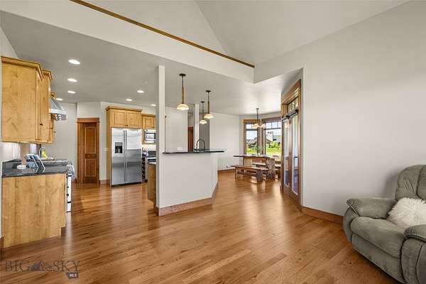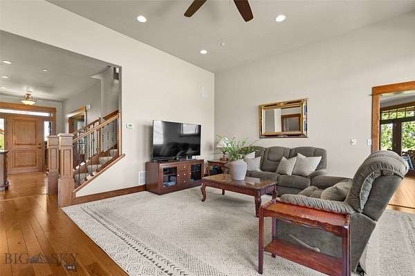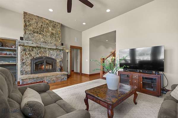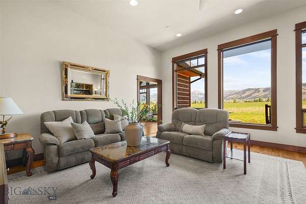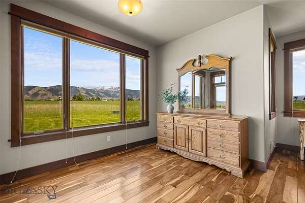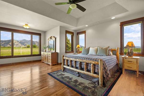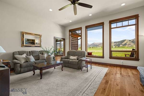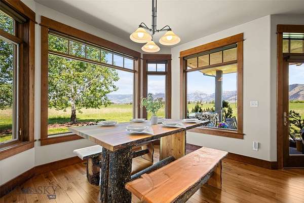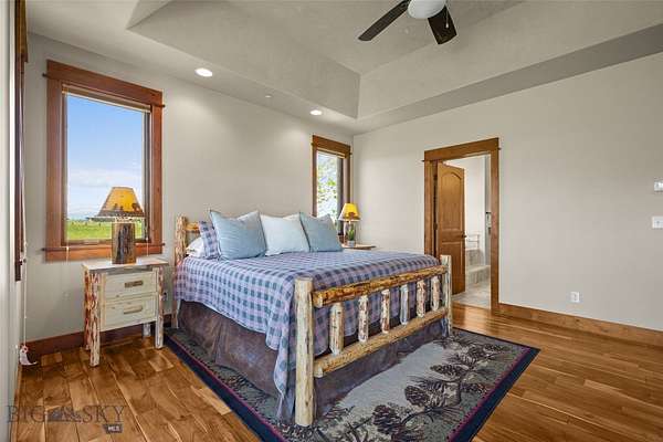 This turnkey home is being offered furnished, so you can begin to celebrate Montana life in this timeless Montana home, where rustic elegance meets thoughtful functionality. Located on a private cul-de-sac, with breathtaking views of the Bridger range, the rural landscape is only minutes to Bozeman, the Yellowstone International airport, miles of recreational trails and Bridger Bowl ski area. The heart of the home is the chef's kitchen, featuring new granite countertops, premium appliances, farmhouse sink, a dining area and inviting sitting area-perfect for casual gatherings or quiet mornings. A stunning moss rock fireplace anchors the family room, creating a warm and welcoming space to enjoy the long winter months. New Montana hickory floors flow throughout much of the main level, adding a rich warmth. The spacious primary suite offers a luxurious escape with a jetted tub, rejuvenating steam shower and access to the back deck. The main level is complete with a designated office and fully appointed mother-in-law suite. Upstairs, two additional bedrooms share a Jack and Jill bath and are complemented by two versatile bonus areas-ideal for hobbies, play or relaxation. Enjoy seamless indoor-outdoor living with a covered patio, covered porch and sprawling deck, all designed to maximize the panoramic mountain views. Numerous updates include a new dishwasher, furnace, microwave, kitchen counters and floors. Exterior was recently stained. A heated garage ensures comfort throughout the seasons. This is Montana living at its finest-private, picturesque and perfectly appointed.