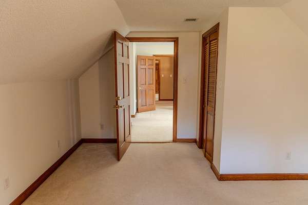 Beautiful brick home with over 2600 sq ft & a side entry garage on 2.5 acres has a lovely park-like setting in the established Woodwind neighborhood. The covered front porch welcomes you into the foyer with the Living Room and Dining Room on each side. The main hallway includes a half bath & coat closet and leads to the Den with a beautiful brick fireplace, gas logs, custom built-ins and ceiling fan. The Kitchen includes an island, pantry & desk area and has recently been updated with a new oven (with convection), new garbage disposal and newer dishwasher (plus the refrigerator remains). The Breakfast Room beside the Kitchen leads to Laundry Room (with washer & dryer remaining), a 2nd covered porch for the side door and an access to the 2 Car Garage. The Primary Suite is on the main level and includes a full bathroom that has been updated and a walk-in closet with custom shelving. The Den leads to a large deck overlooking the spacious backyard that is full of beautiful trees and plenty of room to create your own outdoor retreat. Two additional Bedrooms are upstairs as well as a Loft that is great for an office space, reading nook or play area. Each Bedroom upstairs has tons of closet space. One of the Bedrooms leads to a flex space that can be used as a 4th Bedroom, Playroom, or upstairs Den. The other Bedroom leads to a Huge Walk-in Attic with built-in shelving for tons of storage! There are additional doors to access other sections of the attic for even more storage! There is also plenty of outdoor storage under the deck and in the large crawl space with a concrete floor to store tools & lawn equipment. In the backyard, there is a fenced area on the left side that was previously used as a dog pen. This beautiful neighborhood offers easy access to the great events & dining in downtown Spartanburg as well as the fun activities in Croft State Park.