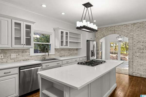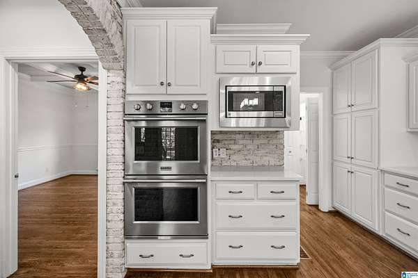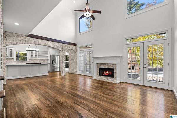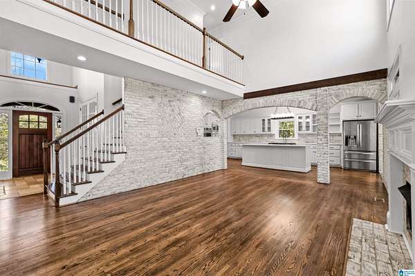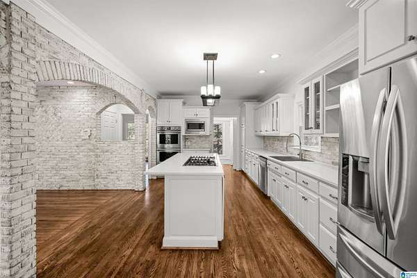 An Entertainer's Dream Come True! This stunning gated brick 4BR/4.5BA home on 3 beautifully landscaped acres is perfect for summer pool parties and fall football cookouts. Located just 10 minutes from the heart of Trussville, it offers a warm welcome the moment you arrive. The remodeled kitchen features custom cabinets and EXQUISITE marble countertops, while fresh paint and gorgeous New Oak Hardwood floors elevate every room. The massive great room is ideal for gatherings, and the spacious master suite offers a walk-in shower and jetted tub. Downstairs, a large bonus room with full bath and walk-in shower is perfect for a mother-in-law suite or 5th bedroom, plus a 2-car garage w/new Epoxy flooring. The backyard is a private oasis with a heated saltwater pool, patio, deck, and stunning outdoor rock fireplace--perfect for year-round enjoyment. A storage building could easily become a pool house, and the huge detached 2-car garage with unfinished loft adds endless possibilities!!!