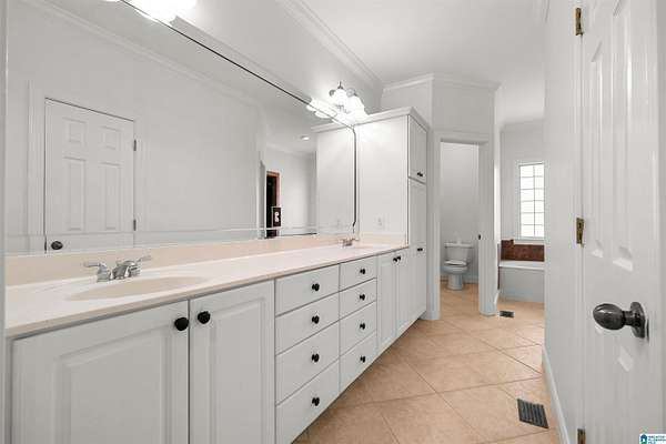 - Jetted Tub, Linen Closet, Recess Lighting, Separate Shower, Separate Vanities, Shared Bath, Textured Walls, Tub/Shower Combo, Walk-In Closets
