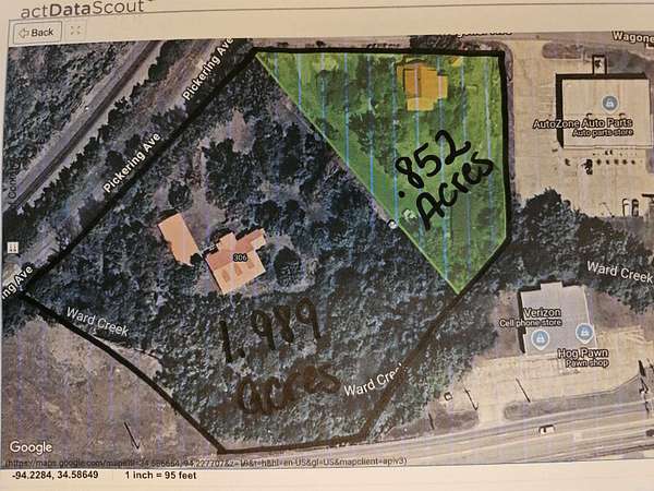 Est $2,031/moEXCELLENT PRIME COMMERCIAL LOCATION WITH A CREEK at one of the busiest intersections in Mena, Ar. This 2.84 acres has a front entrance on Hwy 71 and back entrances on Pickering and Wagoner, garage, shop and city utilities. Possibilities are endless. The home on Wagoner has no value. Will NOT subdivide. Agents must see remarks all before showing