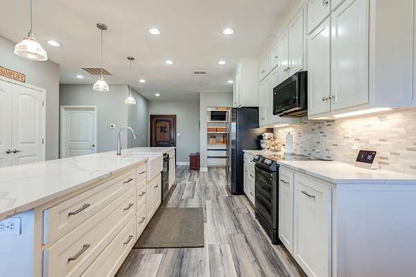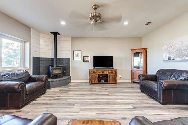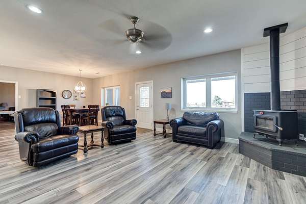 Now offering $10K Buyer Incentive Set on over 3 scenic acres, this barndominium perfectly blends rustic charm with modern design. Inside, you'll find an open-concept layout with soaring ceilings that create a bright and inviting atmosphere. The spacious kitchen is a true showstopper featuring sleek quartz countertops, a large island with bar seating, and plenty of room to cook, gather, and entertain, while the the inviting living area offers plenty of room to relax and gather, highlighted by a cozy corner wood-burning stove that adds warmth and character to the space. This 2-bedroom, 2-bath home offers comfort and functionality throughout, with thoughtful finishes that make it feel warm and welcoming. The barndominium offers 4,000 square feet of workspace with two garage doors, while an additional large shop with room for RV storage provides endless possibilities for hobbies and storage. Call to schedule a showing of this amazing property with peace and privacy of country living just minutes from town.