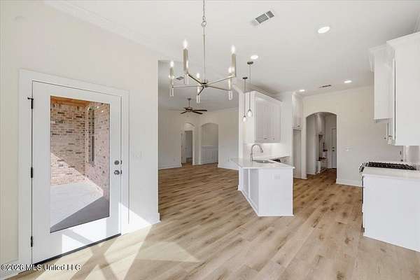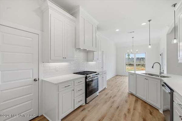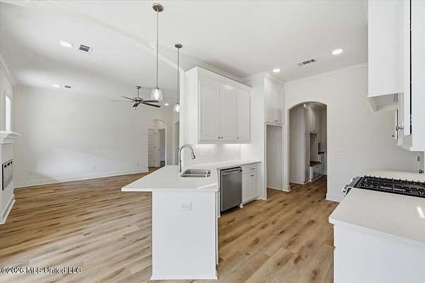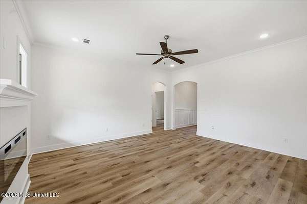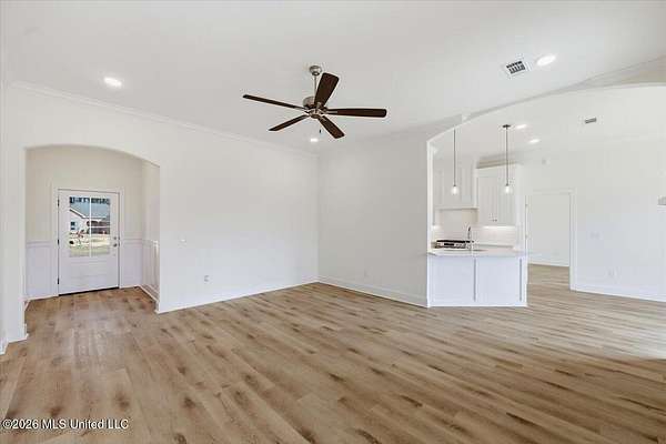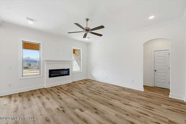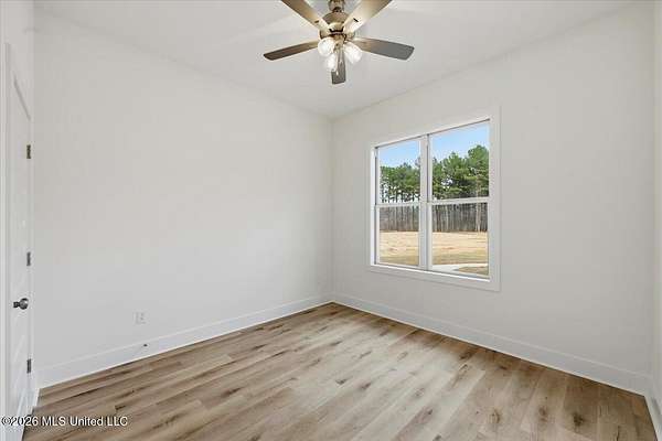 Discover this lifestyle-driven new construction home situated on a 1.5-acre lot and featuring three full bathrooms, a standout combination that sets it apart from other options at this price point. Located in the New Haven community just outside the city limits, this thoughtfully designed 4-bedroom, 3-bath home offers a layout that is genuinely hard to find. From the moment you enter, the attention to detail is evident, with elegant arched accents throughout the foyer, hallway, living area, and kitchen that add character and a high-end feel rarely seen in this range. The home offers durable luxury vinyl plank flooring throughout, custom cabinetry, upgraded quartz countertops, a stainless steel gas range with griddle, tankless water heater, and a modern electric fireplace. The kitchen provides exceptional cabinet and counter space, a walk-in pantry, and abundant natural light from the many windows throughout the home. Storage was clearly a priority, with a laundry room featuring built-in cabinets and a hanging rod, a convenient stop-and-drop area at the garage entry, two separate linen closets in the hallway, and additional storage throughout. The privately tucked-away primary suite features a spacious bedroom with a semi-vaulted ceiling and a private bath offering dual vanities, a soaking tub, separate shower, and a walk-in closet with built-ins, drawers, and ample hanging space. One of the most unique aspects of this home is the fourth bedroom, which is located on its own hallway with a private full bathroom, making it ideal for guests, a home office, or flexible living needs. Additional highlights include a covered back patio with ceiling fan and TV outlet, along with a 2-car garage. This home blends smart design, functional spaces, and architectural details into a truly rare new construction opportunity. This homesite spans just over 600 feet in depth, extending well into the clear cut area past the sodded area behind the home. This area is included in the 1.5 acre lot, creating substantial distance from any future neighboring construction. While the frontage is narrower, the depth provides exceptional rear privacy and some extra space to use and enjoy! New Haven is a beautiful new subdivision in Rankin County, located just outside the city limits, giving you the perfect blend of privacy and convenience. Each home sits on a spacious lot of over 1.5 acres, allowing for plenty of room to spread out. If you've been searching for a property that offers a large, mostly wooded setting with natural surroundings and extra elbow room, this community is a must-see. DIRECTIONS: For GPS/Maps, enter 1175 Sanctuary Drive, Brandon, MS 39042. This address will guide you to the entrance of New Haven (New Haven Lane). From Hwy 80 in Brandon, head south on Hwy 18 for approximately 8.5 miles. Turn right onto Sanctuary Drive. Continue about half a mile, and New Haven Lane will be on the left, which is the entrance to New Haven. Go all the way down to the end and you will run into Stronghold Drive - Take a right and the house is down on the left
