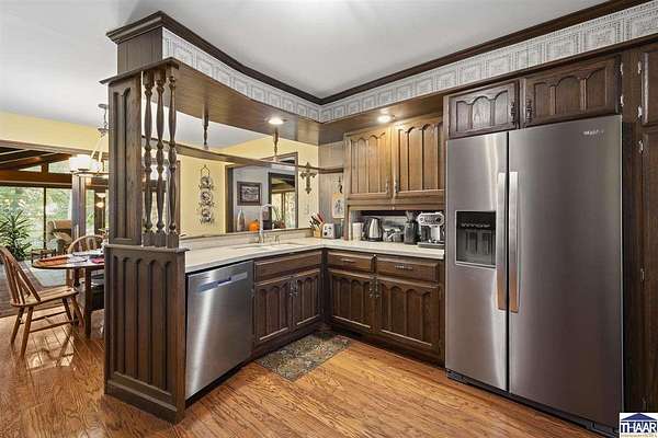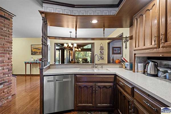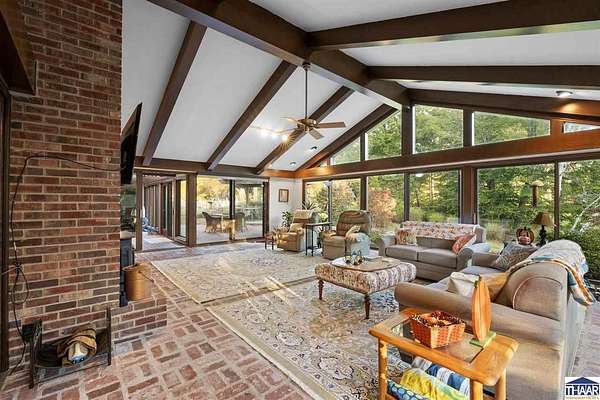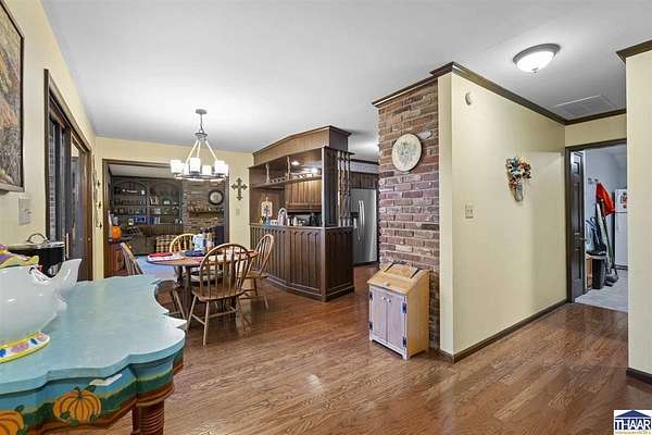 Sprawling ranch on 1.9 acres on the east side is calling you to be HOME! Drive up on the half circle, paved drive and enjoy the landscaping and spectacular yard, as you approach the front entry. Inside, your line of sight notices the cozy living room, as well as the family room and beautiful backyard. The living room has a wood burning fireplace and the family room has a woodburning Buck stove. Both will be great to enjoy as the temperatures turn cooler. The main bedroom suite has been updated with a double sink vanity and a walk-in shower and the hall bath has a jetted tub. The kitchen has been updated with a Bosch gas cooktop. Spacious eat in area with access to the family room and living room. Hobby area /exercise area, at the back of the home, complete with brick flooring. Enjoy the water channel from the backyard, as well as the pergola. or hot tub! Beautiful, professional landscaping and stonework complete the backyard space. Need more than a two-car garage, don't fret, there is a 30 x 45 insulated, separately metered pole barn. It is perfect for parking, a workshop, storage or man cave/she shed! This home is the one you have been dreaming of, so schedule your appointment today with a realtor!