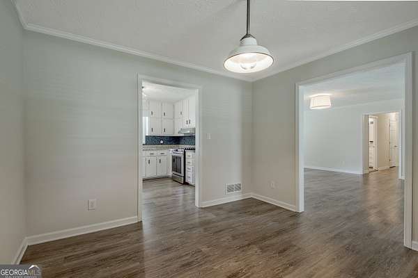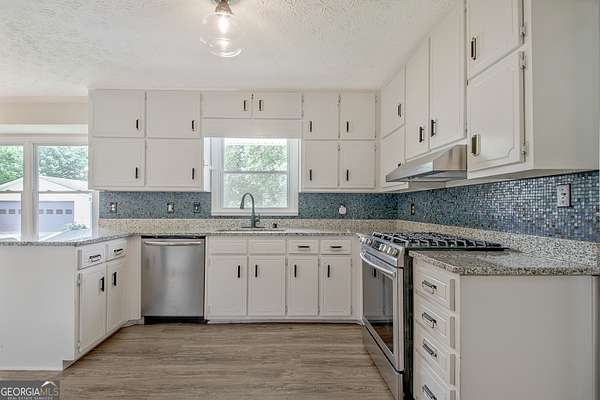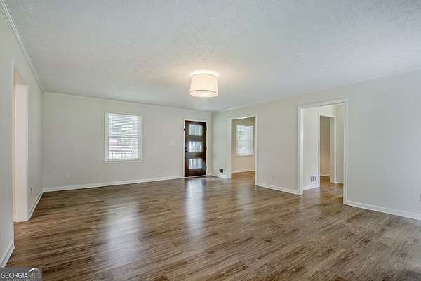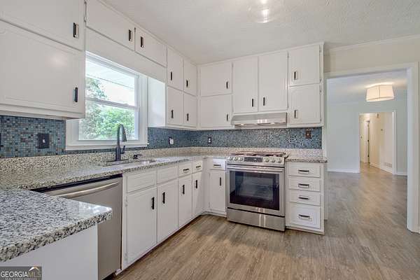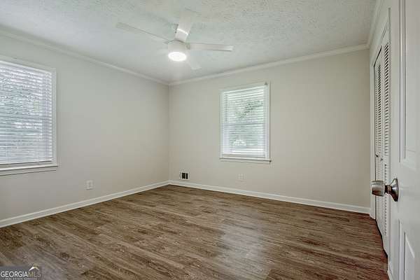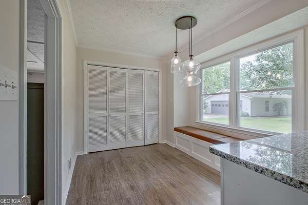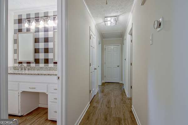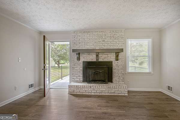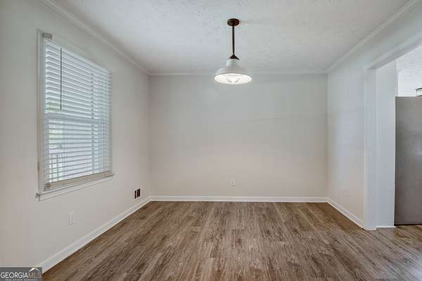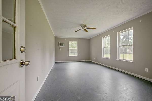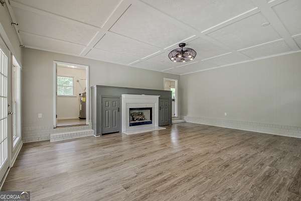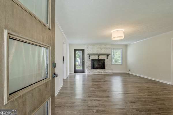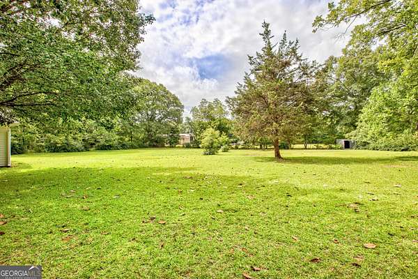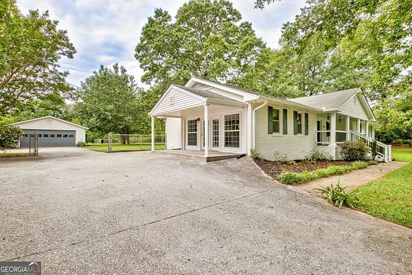Lovely curb appeal and a southern front porch welcomes you to this 3/2 brick ranch on a gorgeous open lot with beautiful hardwood trees. No HOA!- Bring your boat/motorhome/toys! Step into the living room with cozy brick fireplace, and fresh, bright paint. The kitchen with granite, stainless appliances, gas cooktop and sunny window opens to a breakfast nook with window seating and on-trend lighting. Adjacent dining room for family gatherings, or convert to a home office. Spacious rec room may become the hub of the home, or the place for "movie night"! Down the hall are 2 bedrooms with shared bath with extended vanity, plus the primary bed/bath with closet builtins, sliding barn door and tiled shower. Fresh paint plus updated lighting throughout, with no carpet! Spacious laundry off rec room. Outside, a "friends entrance" side door provides convenience from the driveway. The scenic back patio off the living room is ideal for grilling or watching wildlife. A large detached garage makes an enviable workshop and also has an attached finished room for fitness studio, art studio, or work-from-home option. Located just around the corner from Trilith for specialty retail, dining and entertainment. Just minutes to Peachtree City, Piedmont Hospital- Fayette, 3+ fitness centers, restaurants, and grocery stores. 25 minute commute to Hartsfield Jackson Airport. No HOA! Just views of oak trees on almost 2 acres.