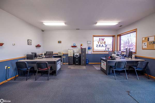 Rarely does an opportunity of this caliber hit the Marshalltown market: a high-visibility, .77-acre commercial property situated at one of the city's busiest intersections with an average daily traffic count exceeding 6,700 vehicles. This meticulously maintained 2,160 sq. ft. metal building offers a seamless blend of professional and industrial utility, featuring a fully climate-controlled front-facing office space and two insulated, heated garage stalls conveniently located on the back side. The property is anchored by an expansive concrete parking lot, providing ample room for clients or equipment. With flexible General Commercial zoning, this site is perfectly suited for a wide array of ventures-from retail and trade services to professional space and more-offering elite exposure and functional design. Don't let this opportunity pass by and call today to schedule your private showing before it's too late.