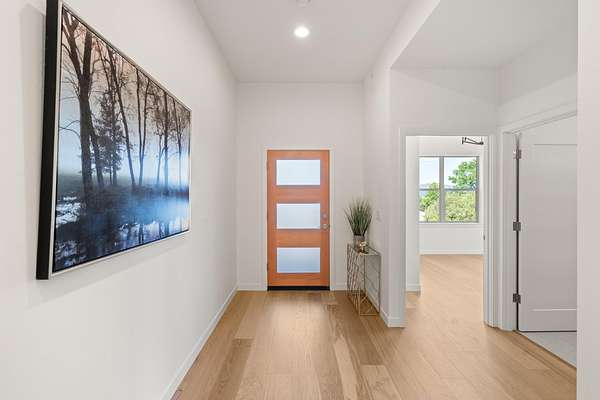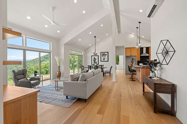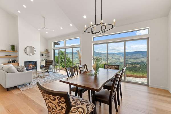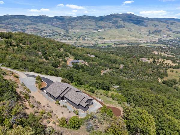 Modern luxury meets privacy in this 2025 custom home by Suncrest Homes, a trusted builder of 450+ Rogue Valley residences. Earth Advantage Platinum certified for superior efficiency, comfort, and long-term savings. Set on a private 5-acre parcel with ample parking and a paved drive, this home is designed to showcase breathtaking panoramic valley views through transom windows and sliding French doors in the vaulted great room, anchored by a cozy electric fire feature. The stylish kitchen offers a generous island, walk-in pantry, textured quartz countertops, and artisan tile backsplash--perfect for daily living or entertaining. White oak wood flooring flows throughout, with tile in the bathrooms. Private well with holding tank and whole-house filtration. XL 2-car garage with workshop space. Ready for your vision of outdoor living. Just 10 minutes to downtown Ashland!