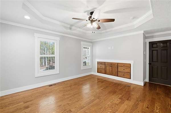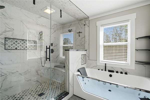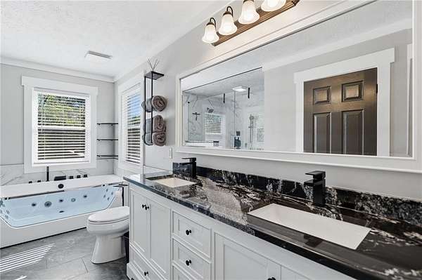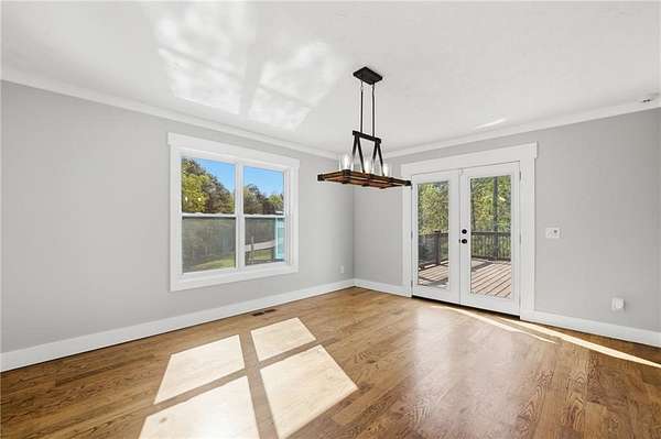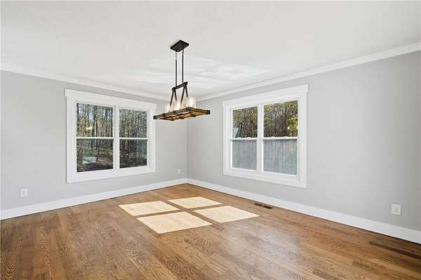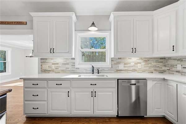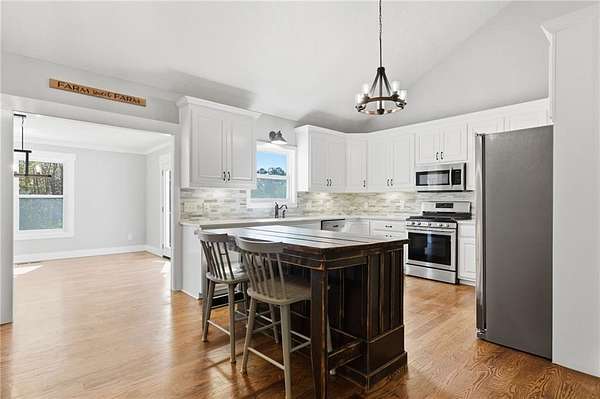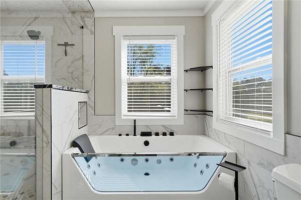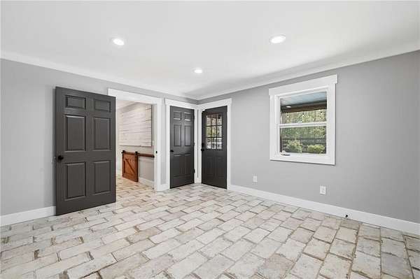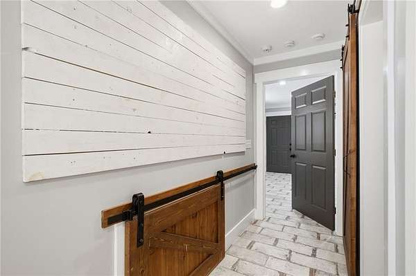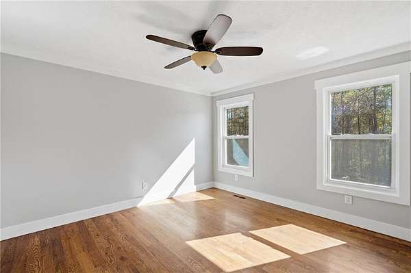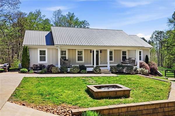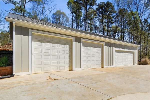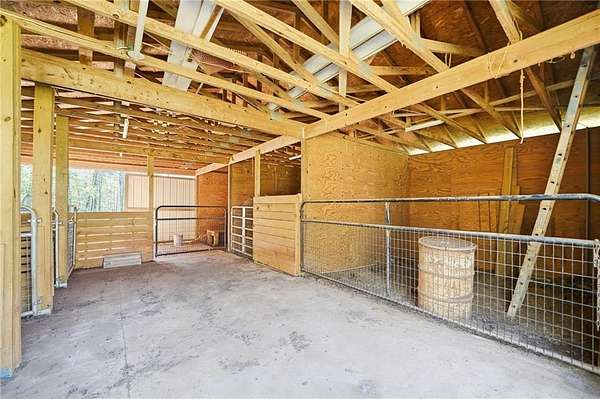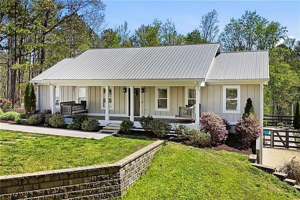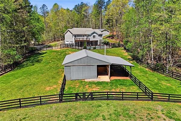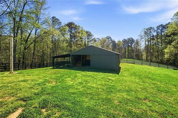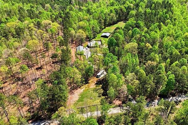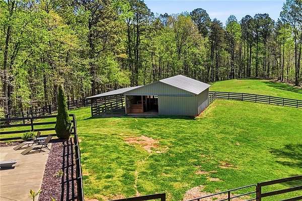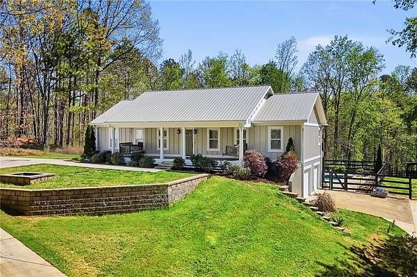 Welcome to your private North Georgia retreat-where modern upgrades meet nearly 12 acres of unrestricted land and unmatched natural beauty. This stunning ranch home, fully renovated in 2019, sits on 11.92 acres and backs directly to WMA and conservation land, offering ultimate privacy, scenic views, and direct access to riding trails for horses or ATVs. A gated entrance and approximately 354 feet of road frontage lead you to a peaceful setting, with the home positioned roughly 400 feet off the road. The property features fenced pastures, a year-round creek, and an ideal layout for both recreation and livestock. Outdoor amenities are truly exceptional, including a 48' x 24' in-ground saltwater pool, a 50-amp RV hookup, and a newly constructed, permitted 55' x 26' detached 4-car shop with two 10' x 10' doors and one 18' x 8' door. In total, the property offers a 6-car garage capacity. The barn, set on a concrete slab, offers three large stalls and four smaller stalls-perfect for animals-with an additional fenced area surrounding the barn. Inside, the home offers 4 bedrooms, 2 full bathrooms, and 1 half bath. The main level features hardwood floors throughout, new windows, board and batten fiber cement siding, and spray foam insulation-all completed during the 2019 renovation. The spacious primary suite includes a recently updated bathroom with heated tile floors ! New jetted tub and dual showerheads for a spa-like experience. Secondary bedrooms are generously sized. The finished basement includes an additional bedroom, half bath, and access to a screened-in porch beneath the main deck, leading directly to the pool-creating the perfect setup for entertaining. Major systems have been thoughtfully updated for peace of mind, including a new septic system (2019), HVAC (2019), and a roof replaced just four years ago. The home also features a buried, owned 1,000-gallon propane tank, a tankless water heater, whole-house water filtration system, and a Generac whole-house generator. Additional upgrades include a new driveway (2022), fresh exterior paint (last summer), new decking, fiber cement soffits and fascia, and vinyl windows. Located in the Ball Ground Elementary, Creekland Middle, and Creekview High School districts, this property offers the perfect blend of rural tranquility and modern convenience. This is a rare opportunity to own a fully upgraded estate with acreage, privacy, and endless possibilities-ideal for a homestead, equestrian property, or private retreat.