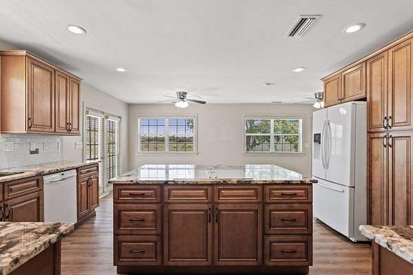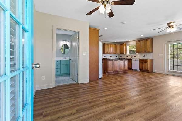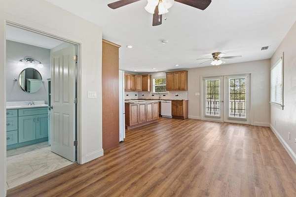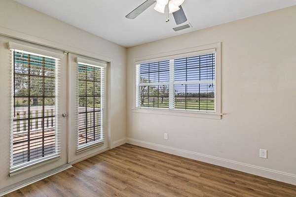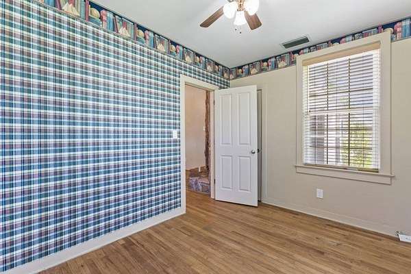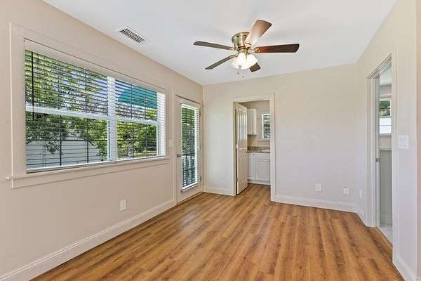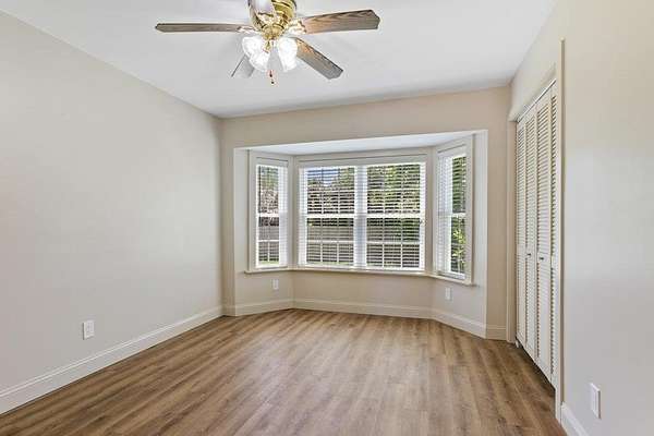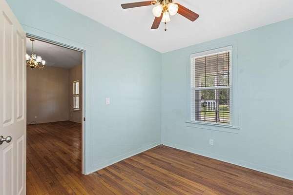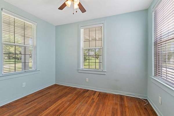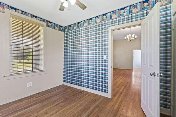 - Bedroom Downstairs, Ceiling Fans, Chandelier, Shed, Window Treatments