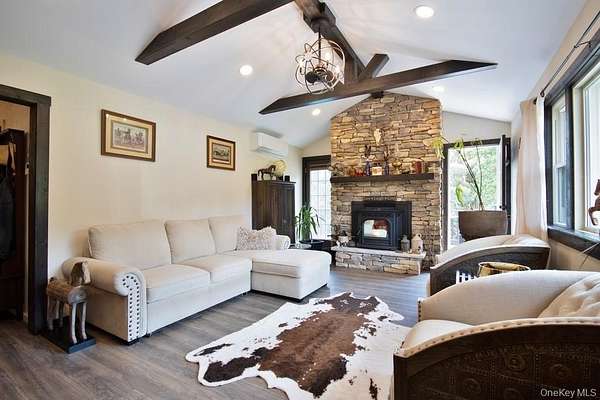 4 Bed/3 Bath 13.19-Acre Commercial Property with Mini Farm - 2,416 Sq. Ft. Home Featuring Two Separate Living Spaces: One with 2 Beds & 2 Baths, the Other with 2 Beds & 1 Bath, Plus Heated In-Ground Pool & 2-Car Garage. Live, work, and thrive on this rare 13.19-acre commercial property on Route 17B in Sullivan County. This versatile property features a working farm, heated in-ground pool with waterfall and slide, gazebo, stream, wooded trails teeming with wildlife, and open fields. At its center is a 2,416 sq. ft. home, blending rustic charm with modern updates, including multiple heating options: mini-splits, oil, pellet stove, and wood-burning fireplace. Interior highlights include beam ceilings, spacious rooms, abundant natural light, upgraded bathroom, stainless steel appliances, and a utility room with washer, dryer, wet sink, and additional bathroom. French doors open to a Juliet balcony overlooking the pool. A separate two-bedroom apartment with a private entrance offers rental income potential or guest space. A 2-car garage is also included. Approximately 3 acres are fully fenced, encompassing the home, pool, and mini farm. The pool is heated, completely fenced in and includes a gazebo, slide, waterfall, and dedicated pump house-ideal for entertaining or relaxing. The mini farm features three paddocks, a hay shed, water pump, tack room, and amp service. There are 2 additional sheds on the property. All outbuildings have electricity. Outdoor features include a riding trail throughout the property, a stream, wooded land abundant with wildlife, a stone BBQ, firepit, and ample space to garden.. A 20k Generac generator supports the property. The commercial zoning with Route 17B frontage offers excellent visibility and access for retail, hospitality, agriculture, or creative ventures-just minutes from Bethel Woods. With its dual-living setup and commercial zoning, this property presents fantastic income potential. Rent out one unit while residing in the other, create a short-term vacation rental, or explore business opportunities that leverage the commercial designation. The mini farm adds even more versatility, allowing for agricultural revenue or hobby farming. Recent upgrades include a new metal roof, electric panel, boiler, water pressure tank, filtration system, and hot water heater. Home improvements include updated heating systems, French doors, beam ceilings, and light-filled interiors. This is a turnkey opportunity to live and build your business in one unique location. The property is conveniently close to Bethel Woods (the original Woodstock festival site), Catskill Resorts Casino, Lake Huntington, White Lake, and more. Includes 2 parcels: Tax Map # 3.-3-21 and 3.-3-22.2