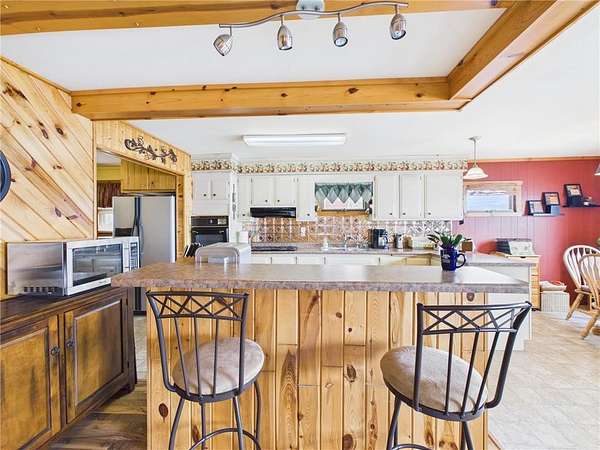 Set on nearly 2 acres of land with 80 feet of prime north-facing lakeshore, the property offers a peaceful setting and beautiful water views. The home features 2 bedrooms and 1 full bathroom, with an open kitchen and dining area designed to take full advantage of the scenic lakefront.