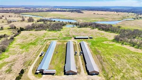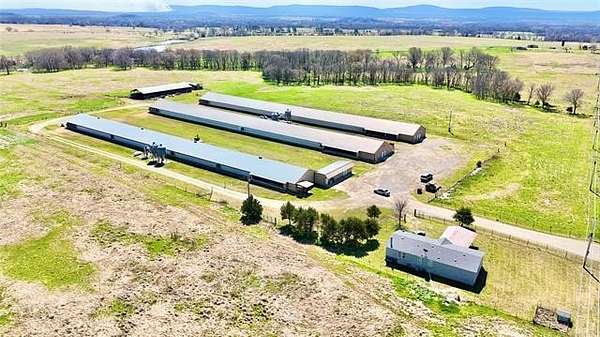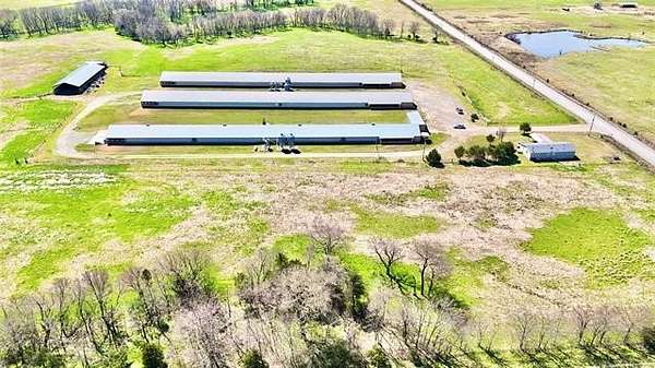 Discover an incredible opportunity with this fully functional 60-acre breeder house farm, designed for optimal poultry production. This working chicken house farm features three spacious houses, each measuring 16,000 square feet, providing ample space for your breeding operations. In addition to the impressive poultry facilities, the property includes a comfortable three-bedroom, two-bath mobile home, offering 1,680 square feet of living space for you and your family. This home provides a perfect retreat after a long day of managing the farm. The farm is equipped with essential structures to support its operations, including a 4,800 square foot litter barn and a 1,200 square foot litter barn, ensuring efficient management of your resources. Pond is stocked with bass and other native fish to the area. With its expansive land, fully operational facilities, and updated atmosphere, this breeder house farm is a rare find for anyone looking to enter or expand in the poultry industry. Don't miss this opportunity to own a thriving agricultural operation!