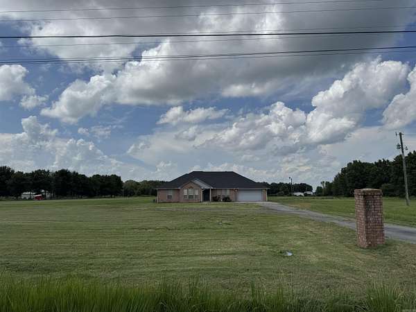 Looking for a home out of town? This Brick one story custom build home has all a family needs! The kitchen is spacious and has a seating area for a small table on one end, and a separate formal dining room on the other end. The living area is large and open with a gas log fireplace and wood floors. There are three bedrooms, one hall bathroom, and an en-suite in the master bedroom area. The master bathroom has had a recent shower upgrade with beautiful white and grey tiles. The house has a two car garage attached, and a large shop out back 23' x 35' with a pull up garage door. If you are looking for more space, the yard is 6 acres. This house is in the country with quick drive to Humphrey, Stuttgart, and the Bayou Meto hunting grounds.