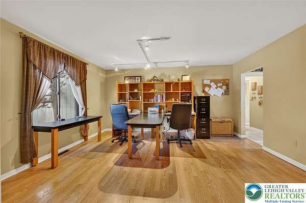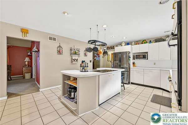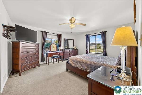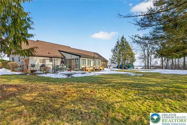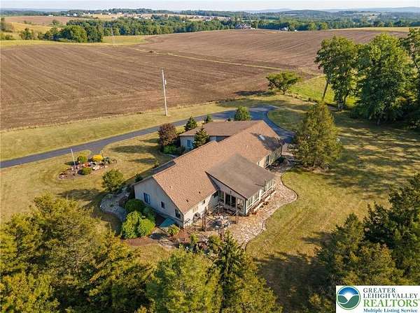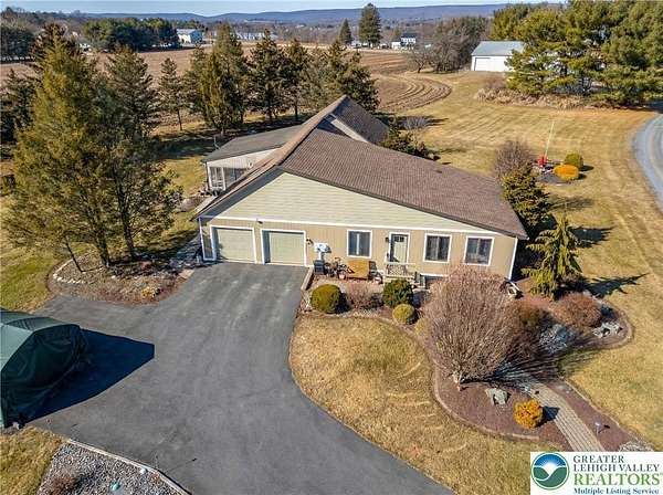 Gorgeous multigenerational home! Welcome to this beautiful home in a peaceful rural setting on over 2 usable acres of land in desirable Moore Township, PA. Surrounded by hundreds of acres of picturesque farmland and abundant wildlife, this property offers privacy, flexibility, and comfort all-in-one exceptional package. Designed for versatile living, the home features a spacious main residence plus a fully equipped in-law suite - ideal for extended family, guests, or potential rental income. A convenient two-car garage provides interior access to both the main home and the private in-law quarters. In the primary home, you'll find two large bedrooms, each with attached full bathroom, plus a large third room currently used as a home office that could easily serve as a third bedroom if desired. The entire home has been meticulously maintained! Large open kitchen filled with abundant natural light throughout - An extra-large four-season sunroom serves as a true highlight, complete with a high-efficiency pellet stove and mini-split system. The mother-in-law suite offers an open floor plan with two generously sized bedrooms, a full bathroom, full kitchen, and a large living room. Perfect for independent living while remaining connected to the primary home through the attached garage. Northampton School District! New Roof and Diamond Landscape Package completed in 2018! 2026 New Water Softener and Filter System. Call today for a private tour!