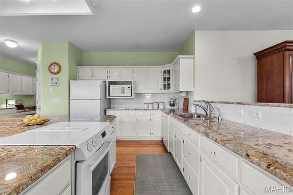 - Custom Cabinetry, Double Vanity, Granite Counters, Kitchen Island, Vaulted Ceiling(s), Walk-In Closet(s), Walk-In Pantry, Workshop/Hobby Area