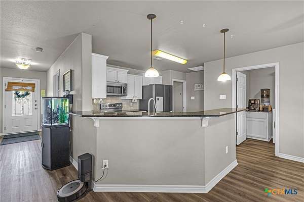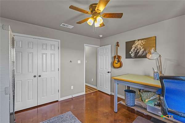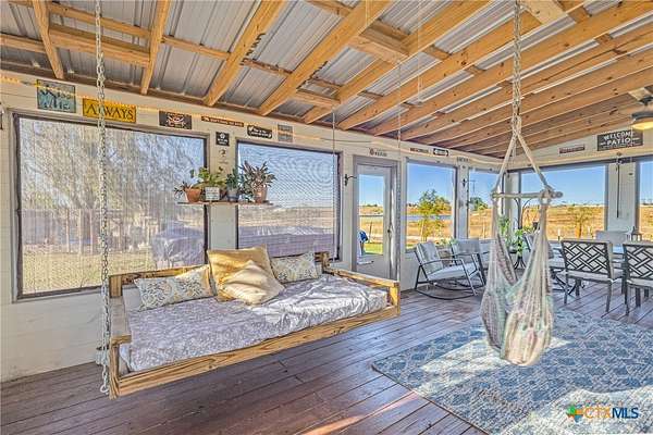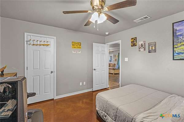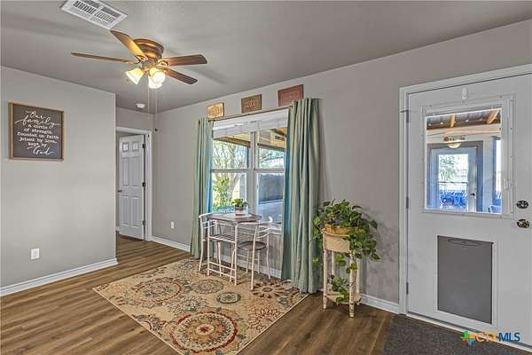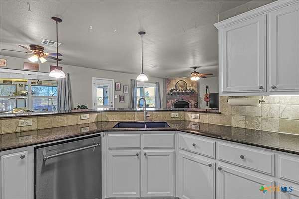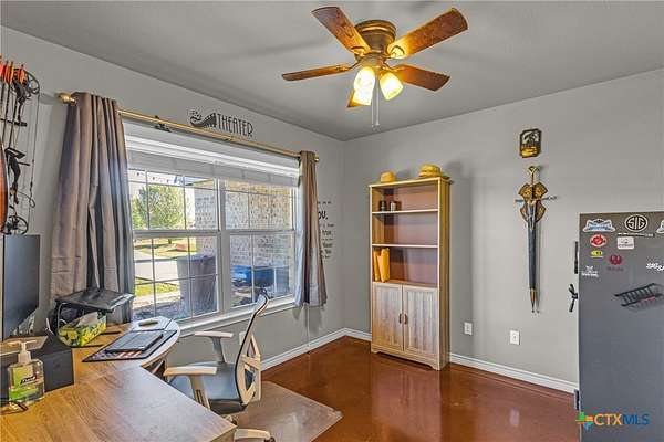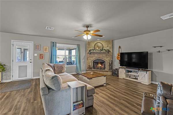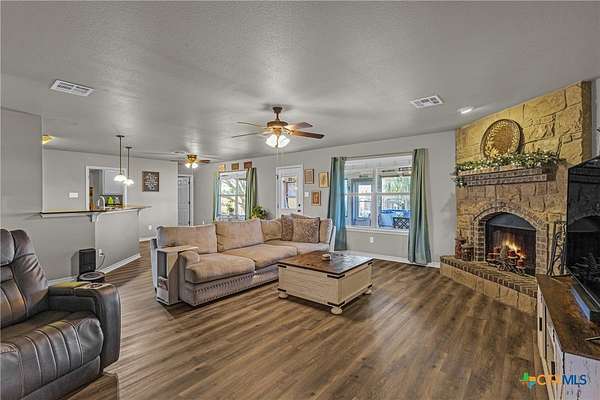 Nestled in a peaceful cul-de-sac, this charming 4-bedroom, 2-bath home with a study offers the perfect blend of country living and modern comfort on nearly 2 acres. A scenic neighboring lot with a large, stocked pond provides added privacy and room to build, if desired. Inside, enjoy a wood-burning fireplace, new LifeProof vinyl flooring, stained concrete bedroom floors, and recent updates including a new roof (May 2023), newer water heater, and whole-home water filtration system with reverse osmosis. Step outside to a covered front porch overlooking the koi pond and an expansive screened-in back porch perfect for relaxing or entertaining. Additional features include a sprinkler system, 50-amp RV hookup, chicken coops with automatic feeders, dog run, pecan trees, and multiple fruit trees. Peaceful, functional, and full of charm-this unique property is ready to welcome you home!