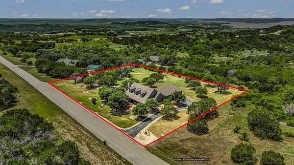 Are you ready to save some major money? How about little to no electric bills especially during these hot Texas days. Electric bills are usually under $50 a month.Thats what you get with this Hilltop retreat in The Hills of Possum Kingdom, this beautifully designed 2,200 sq ft home features 3 spacious bedrooms, 3 full bathrooms, and two dining areas. Enjoy the flexibility of a dedicated office or oversized mudroom, perfect for remote work or keeping daily routines organized. The 3-car garage boasts an epoxy-coated floor, offering both style and durability.