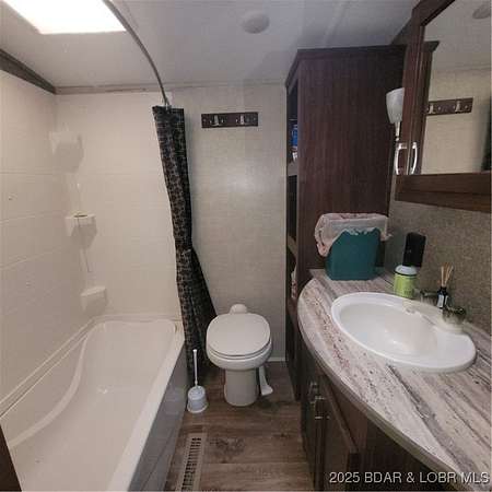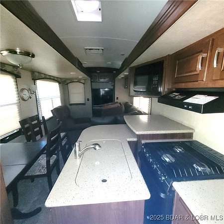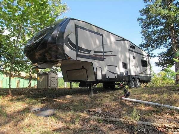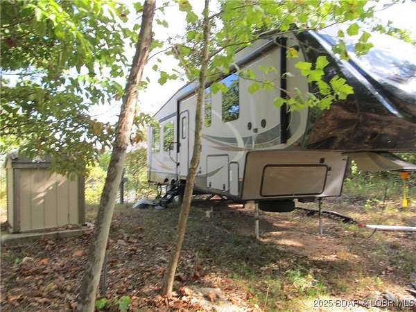 A wonderful weekend getaway set up and ready to enjoy! An almost 2-acre lot with a seasonal view of Lake of the Ozarks at the 55MM.Includes a 2016 Heartland Sundance 3270RES RV with all the utilities in place(water, septic, electricity) including COMO fiber. 3 slide-outs. Queen bed. Boat ramp and slip rentals nearby. Options to keep the RV for weekends or remove and build a lake home with a view! Includes a waterfront lot just a short distance away with potential for adding a dock. Don't miss out!
