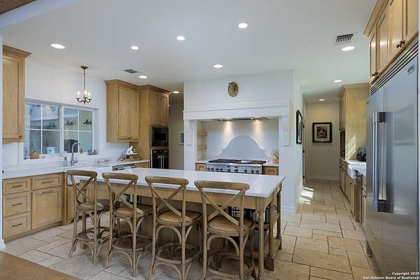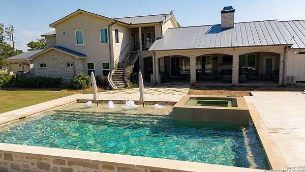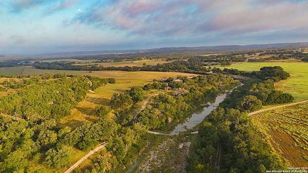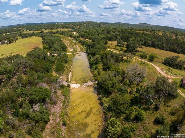 Welcome to Falls Ranch, a breathtaking 776+/- acre unrestricted, legacy property nestled in the heart of the Texas Hill Country, just 10 minutes from downtown Blanco and within an hour's drive to both San Antonio and Austin. This secluded and expansive ranch boasts an impressive 400+ feet of elevation change, with five independent mountain peaks rising to over 1,840 feet-offering stunning 360-degree views that capture the true essence of the Texas Hill Country. With nearly a mile of Blanco River frontage and the convergence of Falls Creek on-site, water features abound across the landscape. Multiple tributaries feed the river, and several ponds-some supported by thoughtfully placed dams-enhance the land's natural beauty and ecosystem. The ranch is fully fenced and teeming with free-ranging wildlife, including whitetail deer, axis, aoudad, and turkey, making it a premier destination for hunting and recreation. Improvements include a beautifully crafted two-story custom home spanning 4,367 square feet with an in-ground pool, as well as a separate hunting cabin for guests or ranch hands. Whether you're seeking a private retreat, hunting paradise, or a generational legacy ranch, Falls Ranch offers unmatched terrain, location, and opportunity just 30 minutes from Fredericksburg. The property includes 430 feet of frontage on River Road, allowing easy access to its many highlights.