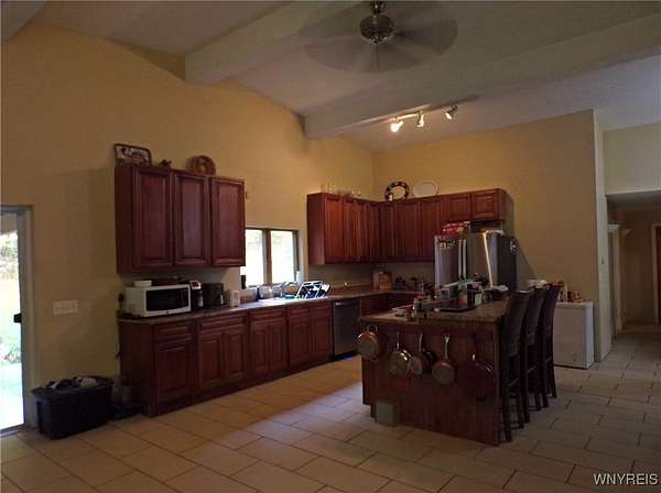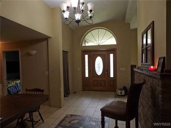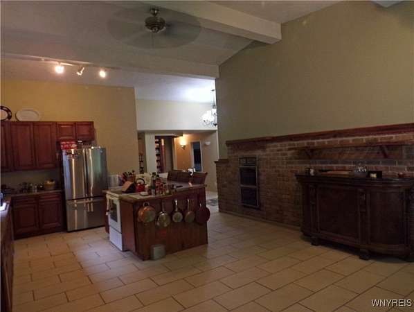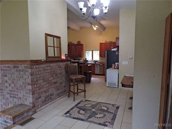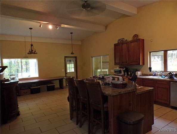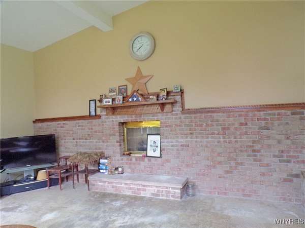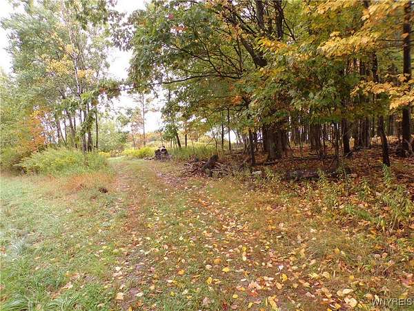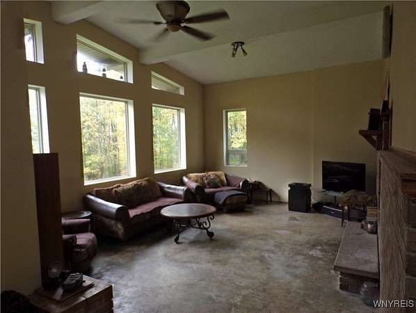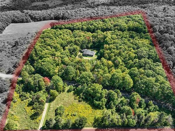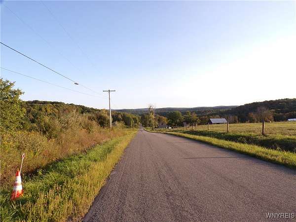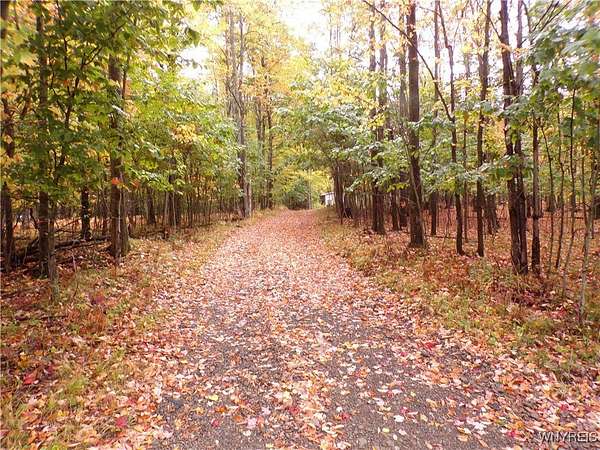 You can feel yourself decompress as you drive through the rolling hills and valley views into the thick canopy of trees. Tucked into the wooded parcel, barely seen from the driveway rests this well constructed contemporary style home. You will feel like you're a million miles away, but yet just a short beautiful 15-minute drive to the village of Wellsville. Enter through the substantial front door with sides and fan lights into the central hall/foyer, soaring 12-foot ceilings create dramatic space in the sundrenched living room with a wall of windows that brings the outside in. The opposing wall of brick, natural wood mantel, hearth and gas fireplace has room for all family and guests. Spacious kitchen/dining room combination with a central island that houses the range, ample counter space and attractive wood cabinetry. Convenient entry to the kitchen from the attached two car garage with drive thru garage door to rear of home. Three spacious bedrooms. Primary bedroom has sliders out to the rear/side patio and Jack-and-Jill style entrance to the bath. With over 2600 sq. ft. this sprawling ranch has great potential to be the home of your dreams. Just bring your imagination and create. Collect on the recently cruised timber value of approx. $35,000 Explore the nearly 23 beautiful acre parcel with walking or riding trails. Hunters' paradise! Don't miss another season or waste your time getting there; it is all right here. Just walk out your door.