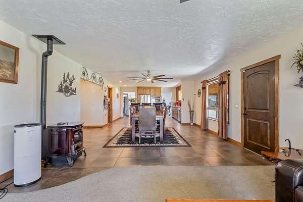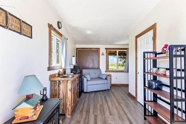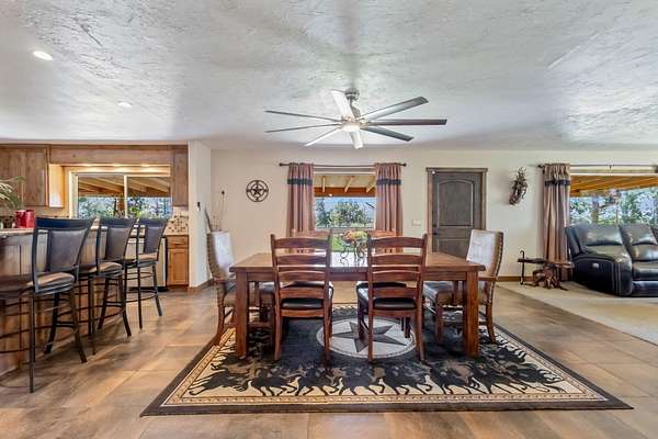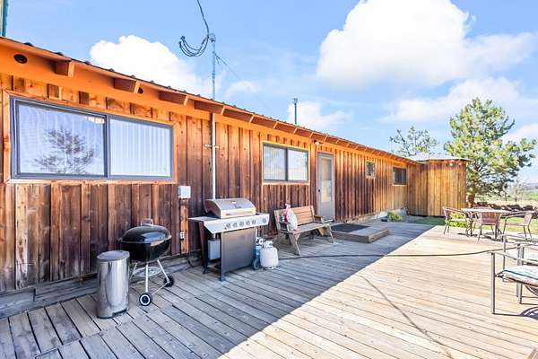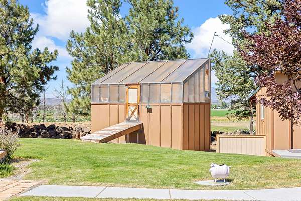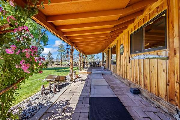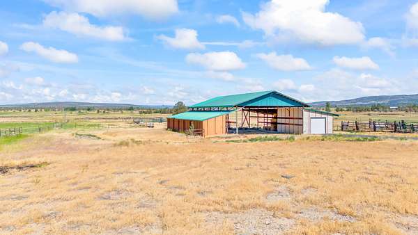 This property not only has everything Powell Butte has to offer but more. For starters the 3032 SF home features 3 bedrooms, 2 full baths & 2 half baths. Great room concept w/large breakfast bar, spacious dining area & kitchen built to entertain. Kitchen includes 6 burner range w/double ovens, granite counters & enormous butler's pantry w/ additional work space. Primary bedroom is large w/ room for exercise equip. & existing sauna. In addition there is a large, vaulted game room w/outside access & it's own bathroom. Perfect space for dual living. For the occasional guest you have a 2 bedroom guest house w/ full bath. Under 3000+ SF of roof is a shop w/110, 220, & 3 phase power, & large walk in freezer. Plenty of space for projects, classic cars or maybe a business? 74 acres w/ 65 acres of gravity fed, flood irrigation. No pumping charges. The property is fenced & cross fenced with barn w/hay storage & 5 stalls. Paved drive & ample parking. Fabulous mountain views!
