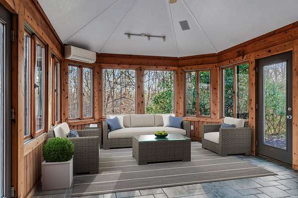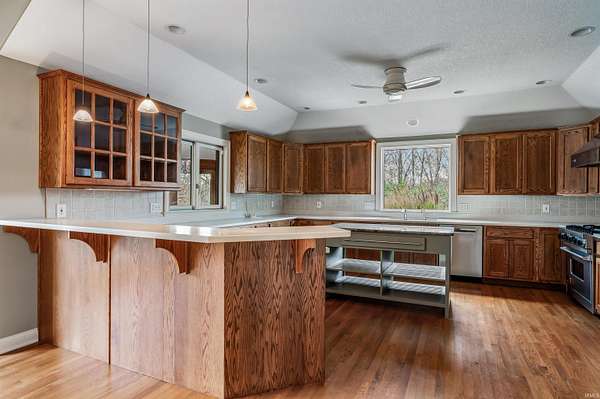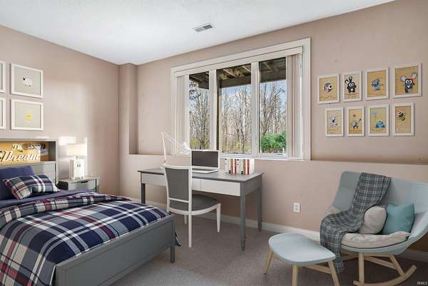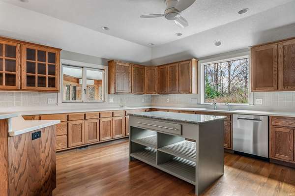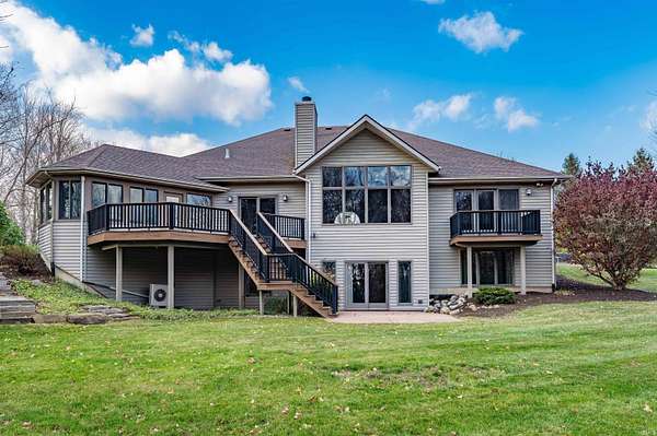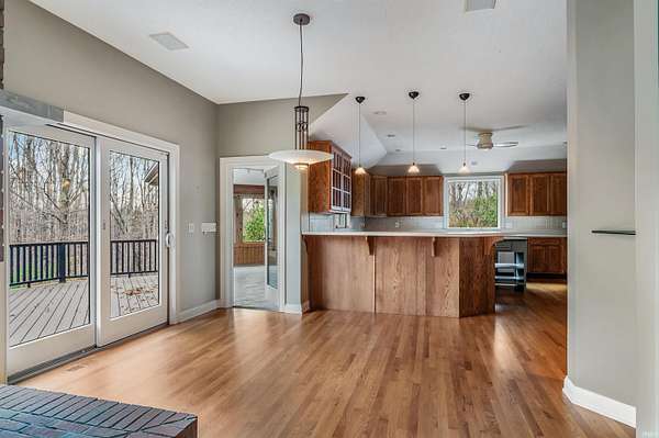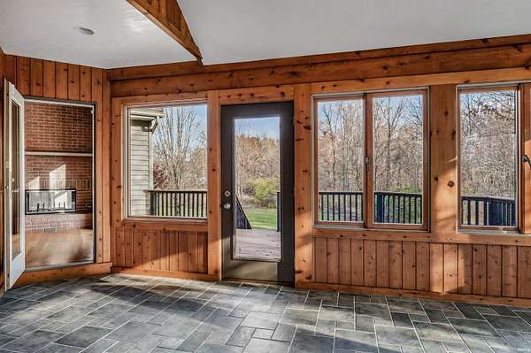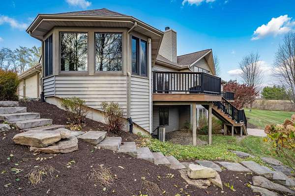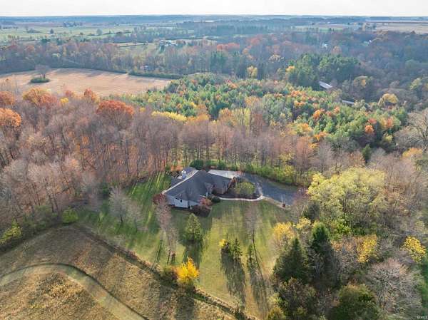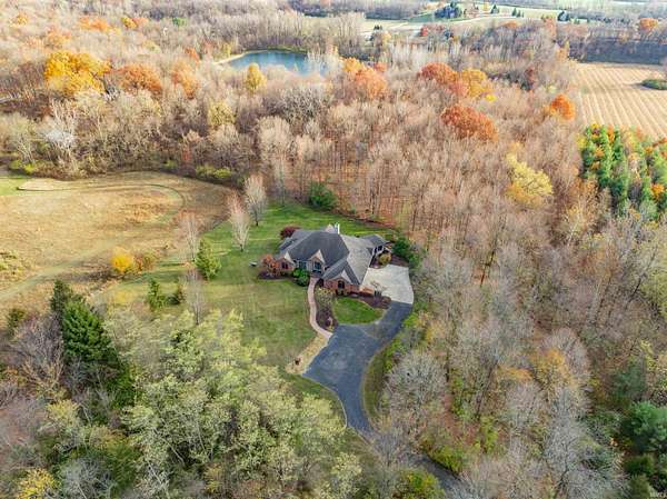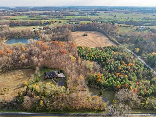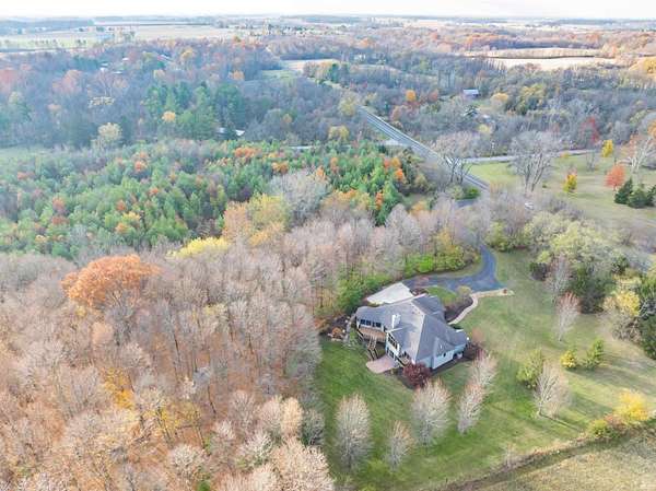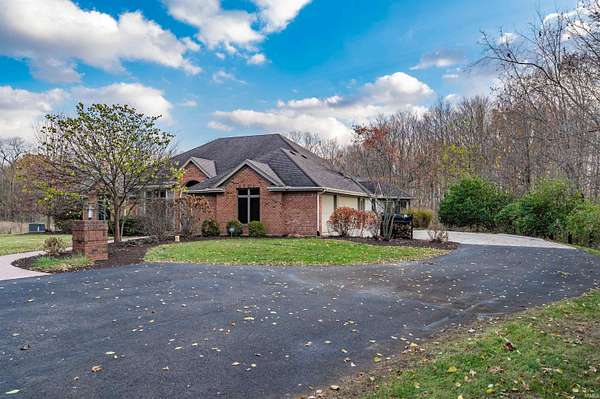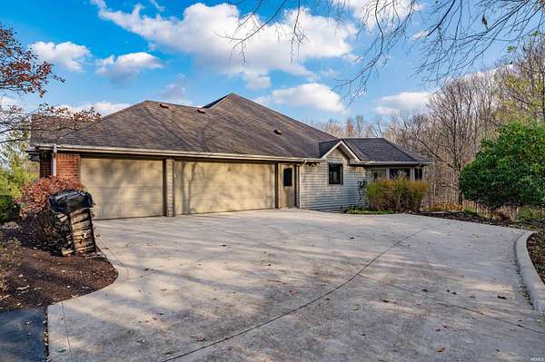 Come home to 13 private, wooded acres and a Hakes and Robrock built brick ranch on walkout basement. The chef deluxe kitchen is sure to please with sprawling Corian countertops, beautiful island, and walk-in pantry. Lovely oak hardwood floors in the foyer, great room, breakfast area, and kitchen. Inviting 4 season room with separate heat and AC to enjoy all year long with access to the new composite Trex deck and railing. Primary bedroom suite on the main floor with tile walk-in shower. Second bedroom and full bath also on main floor plus an attractive office with french doors just off the foyer. Lower level features another bedroom and full bath plus a wonderful kitchenette, family room and recreation room, and LOTS of storage in the unfinished area. Note the new carpet in office, staircase, and lower level in 2025. Also note the whole house generator new in 2024 for peace of mind, irrigation system, whole house air filtration system, tankless water heater, and energy efficient HVAC system. The 3-car garage boasts a deep sink and EV charger. Don't miss the extensive stone steps from the driveway to the lower-level walkout. Truly a great for entertaining and peaceful for daily living.