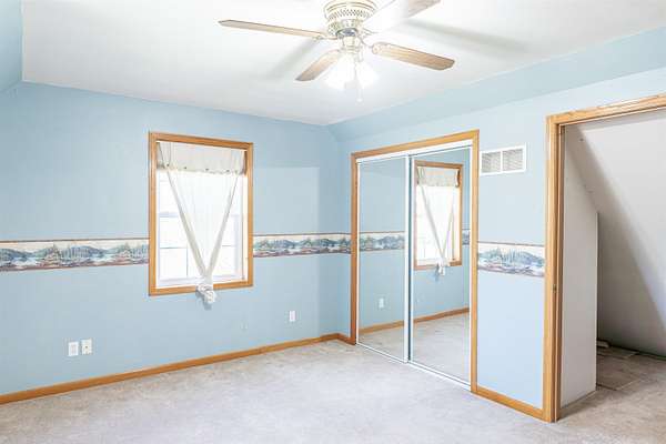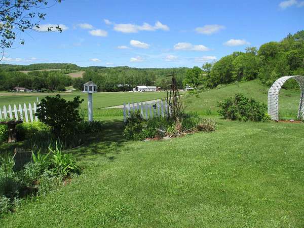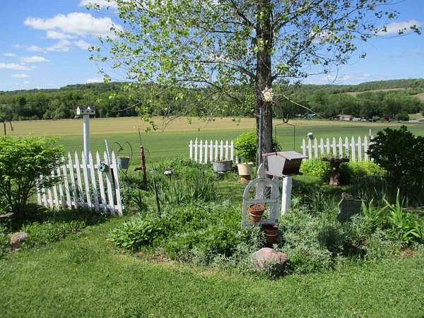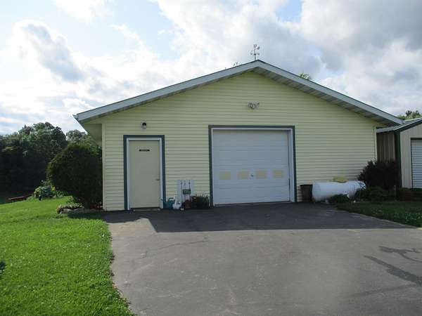 Imagine your next home nested on top of a hill with scenic views from every window. Here it is, this immaculate property features beautifully maintained landscaping that enhances its peaceful setting. The home includes a spacious primary suite, two other nice-sized bedrooms with hidden storage areas, another full bath and two half baths, a breakfast nook, dining area, main living room, and a lower recreational room in the basement. Additional amenities include an attached garage, a back deck, and a covered front porch. Outside you'll find a detached 30' x30' insulated and LP gas heated garage/workshop, a 12' x 20' storage shed with cement floor, overhead door & service door, a plastic garden shed, 6 apple trees, area for large vegetable garden, 2 acres of Wildflowers, many planted garden areas, hydrant in yard, Blacktop driveway, steel roofing on all buildings—all set on 4.02± manicured acres.