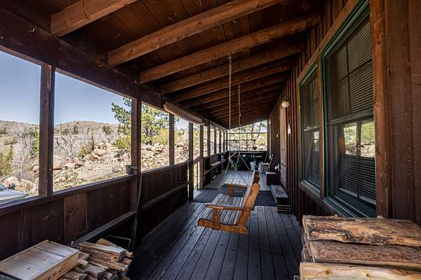 This property packs quite a punch. There are 35 deeded acres with a 2-bedroom 1-bathroom cabin, yet the amenities are of a large ranch with private access to many recreational activities. This low maintenance property is a perfect set up for anyone wanting to escape the hustle and bustle. Not to mention this one comes with a part time property caretaker who delivers water to the home and monitors exterior security.