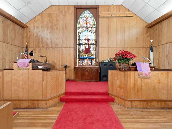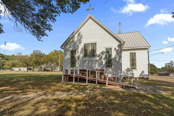 This is a truly rare opportunity to own the oldest church in Daingerfield, a designated Texas historical landmark rich in history, character, and charm. Zoned for commercial and/or residential use, this remarkable property offers endless possibilities for preservation, redevelopment, or adaptive reuse. The property includes two buildings. The main structure is the historic church itself, showcasing breathtaking stained-glass windows, the original church bell, and architectural details that simply cannot be replicated. The site is also home to two Texas State Historical Markers, further enhancing its significance and value. The second building, previously used as a fellowship hall, offers incredible flexibility. It could easily be converted into a residential home, guest quarters, rental property, office space, or continued use as a community gathering area. With outstanding visibility and frontage along Highway 259, one of the area's busiest corridors stretching all the way to Oklahoma, this location provides exceptional exposure and accessibility. Whether envisioned as a church, event center, antique store, homeschool activity center, wedding venue, community space, or something entirely unique, the opportunities are truly endless. Properties like this rarely come available. Steeped in history and located in a high-traffic area, this is a chance to own a piece of East Texas heritage while creating something extraordinary for the future. Schedule your private tour today and explore the unmatched charm and potential of this historic Daingerfield landmark.