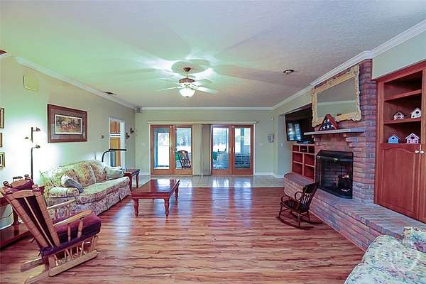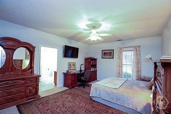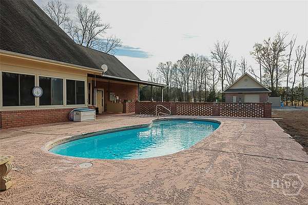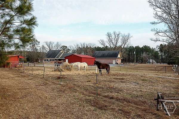 Do you enjoy fishing, hunting, or horseback riding? Then this exceptional 13.34-acre property was tailor-made for you. The estate features a beautiful all-brick 3,023-sq-ft home with a 2-car garage, and an array of outbuildings and amenities ideal for country living. In addition to the home, the property includes a 25' x 41' detached garage/workshop with a full bath and an unfinished bonus room above that could easily be converted into an apartment, an insulated 24' x 35' metal barn, and a three-stall horse barn and dog pens. The land offers approx. 5 acres of planted pine trees and two stocked ponds - one stocked with bass and bream and the other one with catfish. The home itself offers 3 bedrooms and 3 full bathrooms, plus a 448-square-foot bonus room upstairs that could easily serve as a 4th bedroom. This room has its own heating and air unit and is not included in the home's square footage. The large living area features a brick propane fireplace with a beautiful hearth, built-in shelving on both sides, and double French doors that open onto the back porch. The primary suite is located on the main level and includes a generously sized bedroom, a bathroom with a walk-in tub, separate shower, and a huge walk-in closet. The kitchen is designed for both function and entertaining, offering abundant cabinetry, a large island, hard-surface countertops, and stainless-steel appliances, including a built-in fryer and grill. A spacious dining area with a built-in China cabinet is located just off the kitchen. Additional features include a laundry room with cabinets and a sink on the main floor, two large upstairs bedrooms connected by a Jack-and-Jill bathroom, walk-in attic storage, and a large sunporch overlooking the in-ground saltwater pool. The property is equipped with a whole-house Generac generator, a gated driveway, and a full security system. With countless extras and thoughtful details throughout, this property truly offers something for everyone.