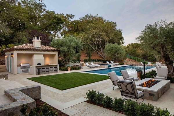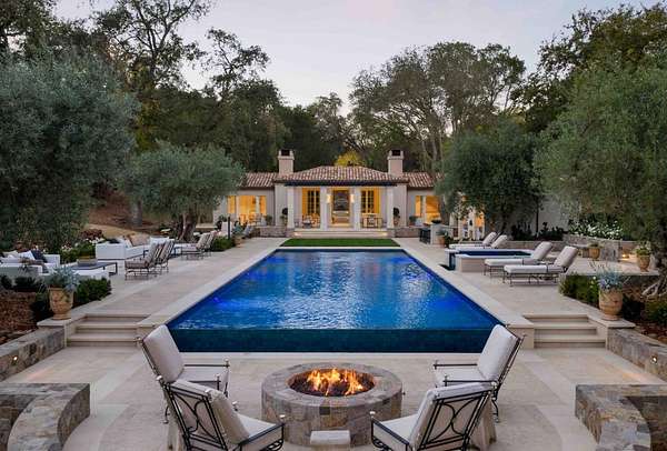 One of Woodside's premier estates, encompassing nearly 10,000 square feet across all structures, this property offers exceptional scale, quality, and lifestyle, highlighted by a classically styled main residence and a brand-new guest house crafted with authentic European detail. The main home is luxuriously appointed across two levels, with nearly every room opening to the outdoors. A state-of-the-art theatre and a temperature-controlled wine cellar are just two of many standout features. The newly completed guest house pairs handmade roof tiles and Genoise eaves inspired by the South of France with state-of-the-art smart home technology. Designed for entertaining, the guest house opens to a new saltwater pool and spa and expansive limestone terrace with a full outdoor kitchen and easy catering access. A 310-vine Cabernet vineyard anchors the south-facing gardens, while heritage olive trees and oaks, a fragrant parterre rose garden, bountiful orchard, and raised vegetable beds enhance the estates agrarian beauty. The result is a property where timeless elegance and refined European living are masterfully expressed in an extraordinary private setting of more than 3 acres with western hill views. Main Residence 6,485 | Guest House 1,505 | Garage One 560 | Garage Two 520 | Gym 560