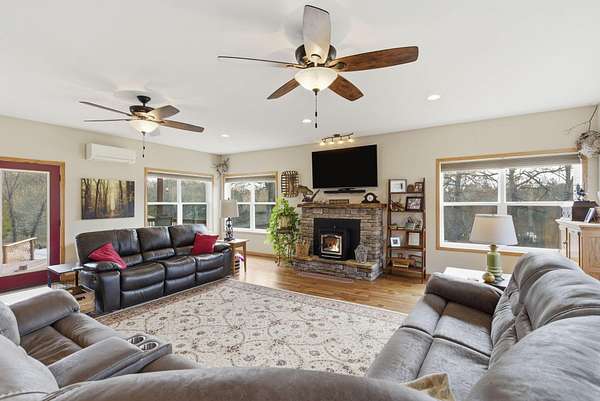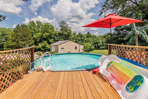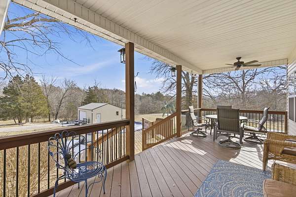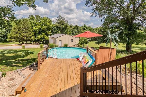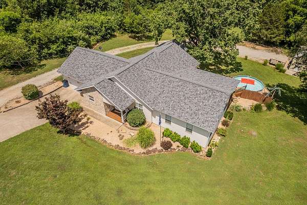 Welcome home to this spacious and well-maintained property situated on 2.16 acres m/l, offering the perfect blend of comfort, function, and outdoor enjoyment. This beautiful home features 4 bedrooms and 21/2 baths, with a thoughtful layout that includes a formal living room and a huge sunken family room ideal for gatherings and entertaining. Cozy up by the fireplace with pellet insert while enjoying the warmth and charm of the hardwood floors throughout.Step outside to a covered deck overlooking the pool, creating the perfect setup for relaxing and hosting on warm summer days. Major updates provide peace of mind, including a new roof (1 year old) and HVAC system (4 years old).For hobbyists, boat owners, or anyone needing extra workspace, the property includes a 24 x 30 shop building with a 12 x 25 addition, complete with 100-amp electrical service and an overhead door sized for boat storage.Ideally located for lake lovers, this home is close to Cape Fair Marina for boating and the public boat launch at Bridgeport, while still being just 15 minutes from shopping and medical services in Branson West. This property delivers space, upgrades, convenience, and versatility -- all in one exceptional package.