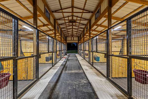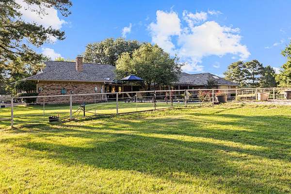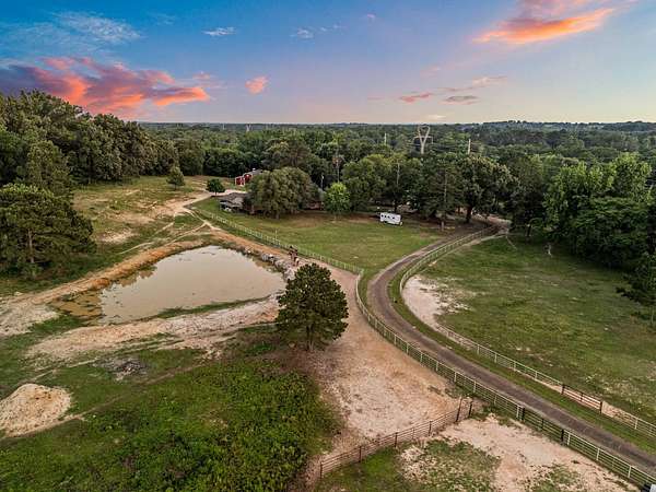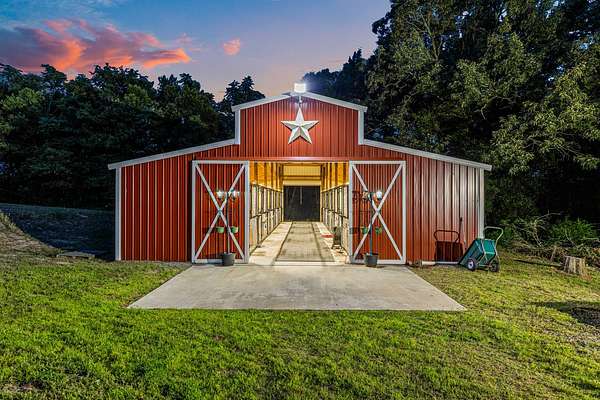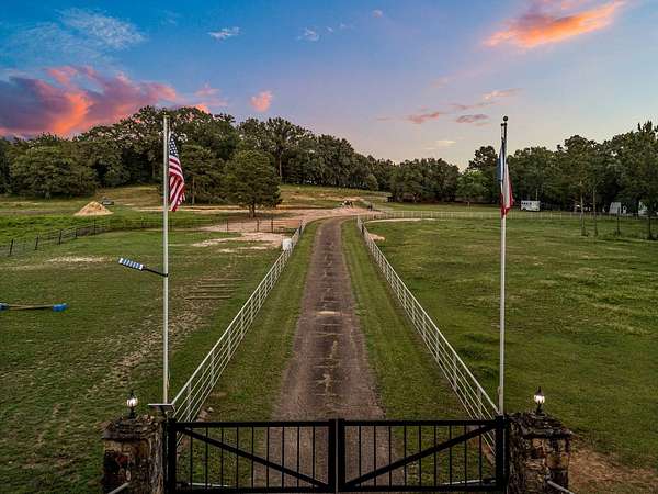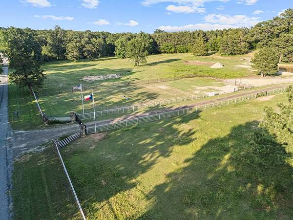 TS Horseshoe Ranch is a 32+- acre property for sale in Morris County, Texas. From the custom house to the fully equipped horse facilities, this ranch was built to serve both everyday living and livestock or equestrian needs. The layout balances privacy and open views, with wooded acreage tucked behind the house and improvements positioned for easy access and efficiency. Location: Located only a mile outside of Naples, the ranch provides convenient access to town while offering plenty of space and seclusion. Mount Pleasant is about 18+- miles away, and Texarkana is within a 45+- mile drive. The property has access off Highway 67 and frontage along CR 4307. Improvements: The 3,606+- sq/ft 3BR/5BA main house, with each bedroom having its own ensuite. Italian tile, vaulted ceilings, built-in shelving, and detailed finishes like wainscotting and a wired sound system offer everyday comfort with a functional layout. The oversized back patio is built for hosting, with a heated saltwater pool, hot tub, and room for an outdoor kitchen. A three-car garage is attached for convenience. Additional improvements include a 40x50 insulated and heated shop with RV hookups, septic, and automatic doors, along with a loft for added storage. There's also a 36x40 chicken coop with electricity and a 12x10 insulated feed or storage room. The horse setup includes a 10-stall show barn, arena, and a pipe fenced horse pasture, all accessible through a gated entry. Land & Water: Roughly 15+- acres are wooded and ideal for trail riding or keeping livestock shaded, adding to the ranch's privacy. The open areas near the house overlook a stocked pond, offering a peaceful setting with good water access and pasture use. Remarks: TS Horseshoe Ranch is ideal for country living and equestrian use. With the improvements already in place, and the land offering a mix of open views and private wooded trails. This ranch is a perfect opportunity to own a turnkey property in a prime East Texas location.