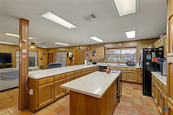 This 3 bedroom, 2 bath residence is perfectly situated on a combined corner lot, offering both highway frontage and a serene residential street. As you enter the 2291 square foot home, you're greeted with Saltillo tile floors that flow seamlessly throughout the open-concept design. The generous living room, dining room, and kitchen provide a perfect space for gatherings. The master bedroom features not one, but two walk-in closets which runs parallel with the rest of the ample storage space throughout the home.The additional bedrooms are perfect for family, guests, or even a home office. The utility room enhances your convenience providing space for extra refrigerators or freezers, along with a walk-in pantry to keep your kitchen fully stocked. Step outside and view the beauty of nature with a blend of legacy oak trees and pecan trees , providing shade and charm. In addition, there's a 2 car carport and small storage shed. Don't miss this opportunity to own property that combines charm, functionality, and location.