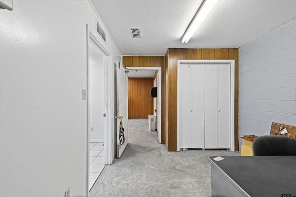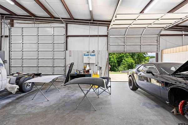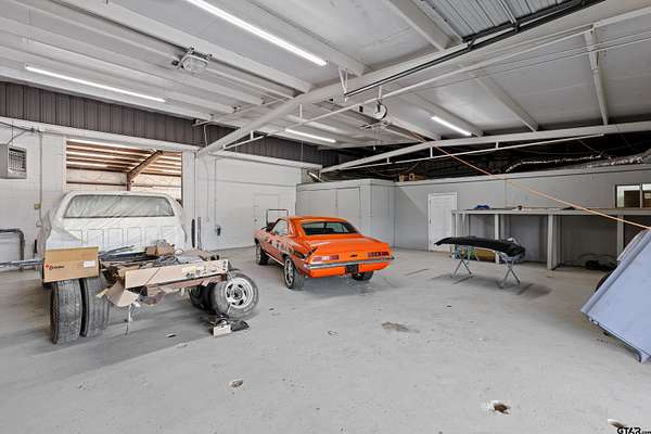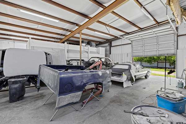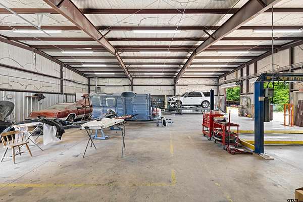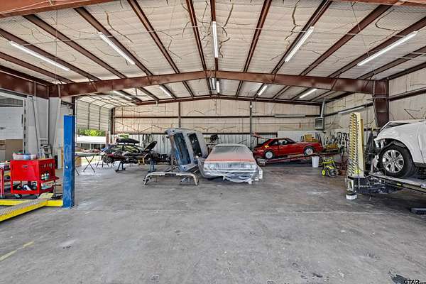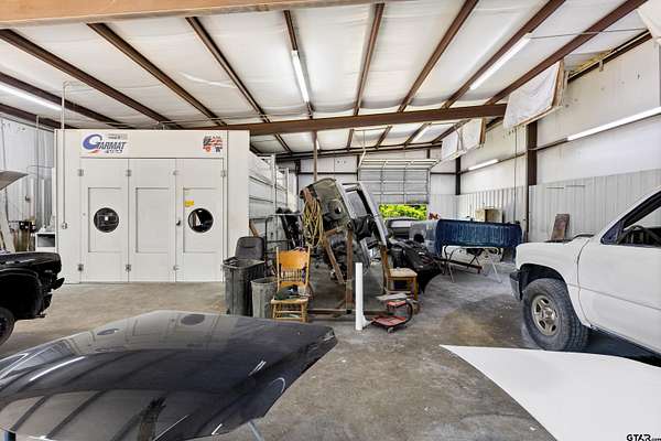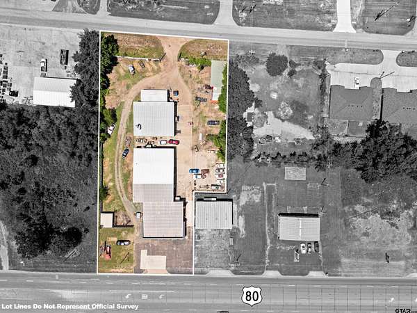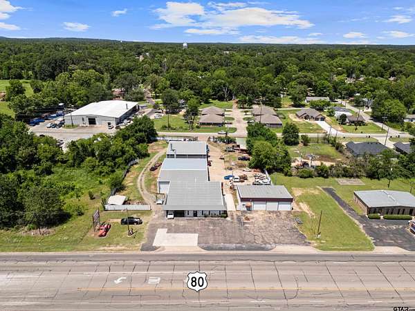 Prime automotive commercial property on high-traffic US Hwy 80 in the heart of White Oak's business district. This two-building setup on 1.15 acres is ideal for an auto body shop, mechanic shop, collision repair, paint and body, diesel repair, fabrication, fleet services, or anyone needing large shop space with major visibility. The front building offers approx. 6,248 SF with a brick facade facing Hwy 80 and durable concrete block/metal construction. Currently operating as an auto body repair facility, it includes about 1,070 SF of office space, four restrooms, storage rooms, steel walk-in doors, and multiple overhead bay doors sized 10', 12', and 14' for easy access to trucks and heavy equipment. A plumbed-in Sullair industrial air compressor is already installed, making the shop ready for automotive operations. The second building behind the main shop offers approx. 3,000 SF and is set up as a paint shop with its own restroom and four large overhead doors (two 12' and two 14'). Perfect for paint and body work, fabrication, detailing, or additional repair bays. Both buildings have separate electric and gas meters, giving flexibility to lease individually or run a multi-operation automotive or industrial business. The property features road frontage on two sides, allowing for separate entrances and excellent traffic flow. Site improvements include reinforced concrete areas built for heavy vehicles and equipment. Recent updates include new toilets, fresh paint in select areas, a new water heater in the shop restroom, and a recent roof repair. This property has supported a successful auto body shop for more than 35 years and offers outstanding potential for owner-operators or investors looking for high-demand commercial shop space. A recognizable White Oak landmark, known for the red fire truck out front, and a rare opportunity on Hwy 80.