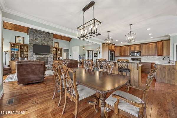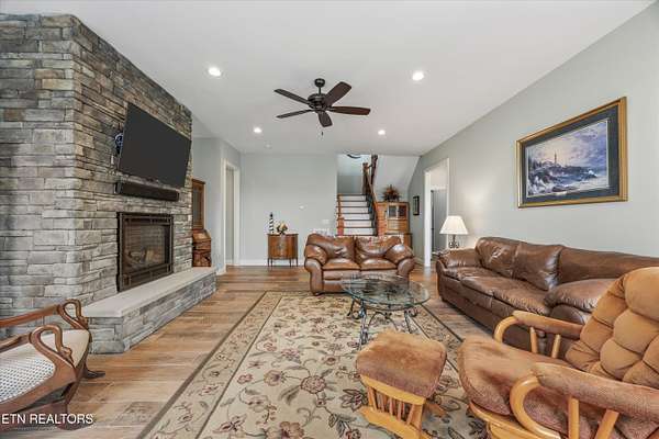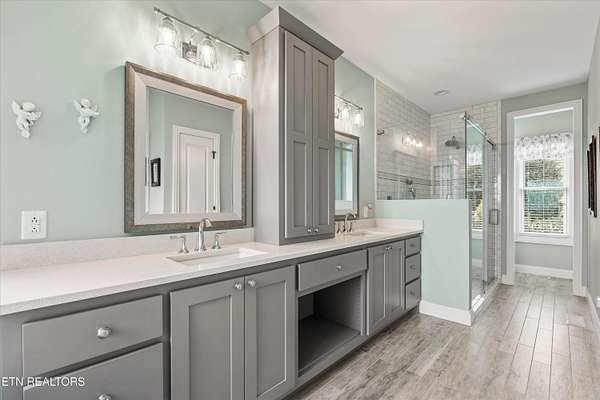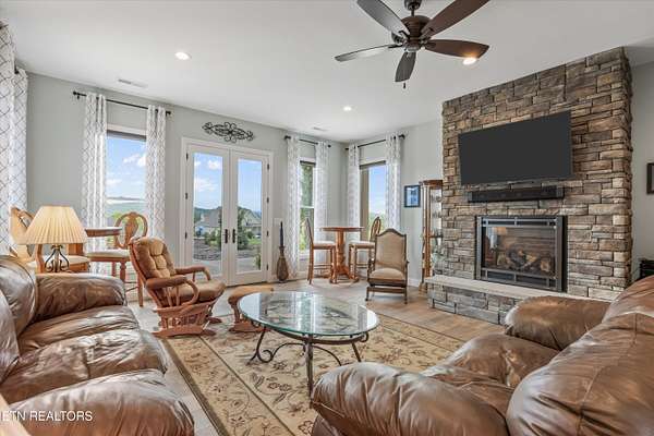 Stunning custom built home in the highly sought after lakeside community of Grande Vista Bay! Sitting adjacent to beautiful Watts Bar lake, this is a prime location that offers community amenities including a large luxury clubhouse, pickle ball courts, bocce court, pool, and multiple boat slips. This home sits on 1.81 acres and offers breathtaking views of both lake and mountains. With over 4,300 sq ft of living space, there is also a massive ~1100 sq ft garage and nearly ~800 sq ft of covered/screened porches perfect for relaxation or entertaining. The open floor plan with vaulted great room and gourmet kitchen is spacious and provides an abundance of natural light. Attention to detail is evident at every turn w/ custom hardwood flooring, tongue & groove ceilings, exposed beams, stone fireplaces, & much more. Enjoy lake views from your master bedroom ensuite with quartz counters, custom cabinetry, large tile shower, & walk in closet. Basement level features stone fireplace in the family room, 2 bedrooms, storage rooms, and access to custom stone path and a fire pit area looking at breathtaking views. This property is the ultimate combination of views, convenience, amenities, and quality!