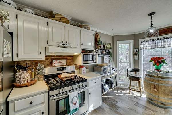 Welcome to your Private Retreat-where nature, comfort, and convenience come together. Nestled on over 2 acres of serene, picturesque land, this 4-bedroom, 3-bathroom home offers breathtaking pond views and a peaceful setting that feels like a mountain getaway-yet is just minutes from town. Step outside and unwind as you take in the tranquil water views from the newly installed deck (2022), the perfect place for morning coffee, evening sunsets, or entertaining friends and family. The surrounding landscape provides privacy, quiet, and a true sense of escape from the everyday hustle. Inside, the home has been wonderfully maintained and thoughtfully updated for comfort and peace of mind. The interior feels cozy and offers spaces that are perfect for everyday living and memorable gatherings. New flooring installed in 2022 complements the warm, inviting interior. Brand new exterior doors were just installed as well. The home also features a whole-house water filtration system, along with a new well pump and pipes. Topped with a durable metal roof installed in 2022 this property combines modern upgrades with timeless appeal-making it ideal for those seeking a balance of nature, space, and convenience. If you've been searching for a home that offers privacy, scenic beauty, and move-in-ready upgrades, all while remaining close to town, this rare opportunity delivers it all.