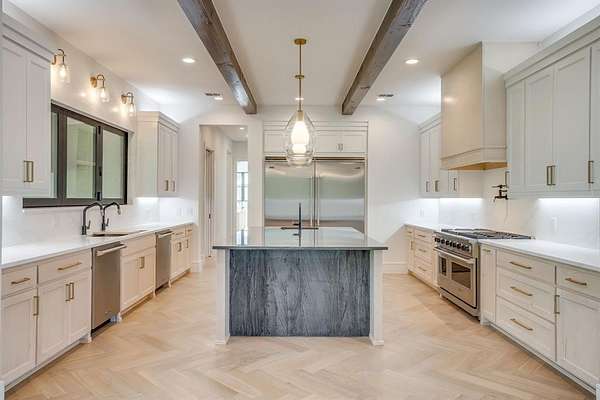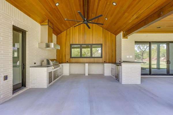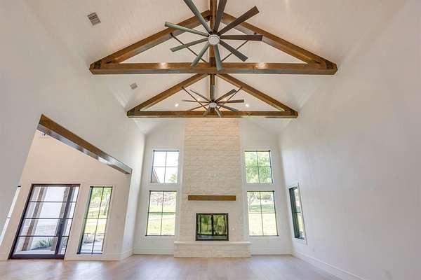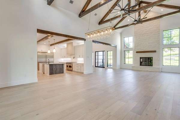 Experience luxury living at its finest in this meticulously crafted custom home where no detail has been overlooked. Located in Bear Creek Estates within the highly sought after Aledo ISD, this home is built with pride and precision, showcasing exceptional quality and timeless design in every detail. Enter through custom steel pivot doors onto beautiful White Oak engineered wood floors that flow seamlessly through an open-concept floor plan accented by rich wood beam details throughout. The gourmet kitchen is a true showpiece, complete with quartz countertops, a Viking appliance package including a built-in refrigerator, and a spacious butler’s pantry for effortless organization and entertaining. The living room exudes warmth and sophistication, highlighted by a real wood beams and a stunning Austin White Stone fireplace that serves as the perfect focal point for gatherings. Expansive sliding glass doors open to a large covered patio with a fully equipped outdoor kitchen, extending your living space into the serene outdoors. Each bedroom is generously sized and features custom closets, offering both style and practicality. Modern efficiency meets elegance with three tankless water heaters and spray foam insulation for year-round comfort. Set on a large, private lot backing to Bear Creek, this property offers a tranquil setting with scenic views and serene privacy, an ideal retreat from the everyday. From the finishes to the fixtures, every element has been intentionally chosen, making this home a true reflection of craftsmanship and care.