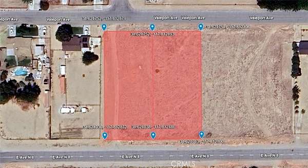 Est $371/mo1.38 acres zoned Residential Vacant Land ready for your vision. TWO land parcel identified by APNs:3071-014-017 and 3071-014-016. No situs address assigned by county; address shown is for MLS input only. GPS coordinates: 34.624394, -117.812682 and 34.624396, -117.812297. Buyer to verify zoning, permitted uses, and utility availability.