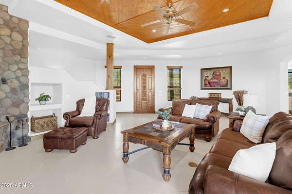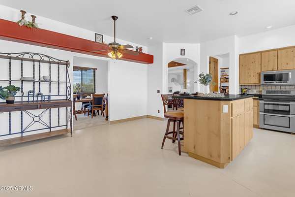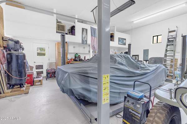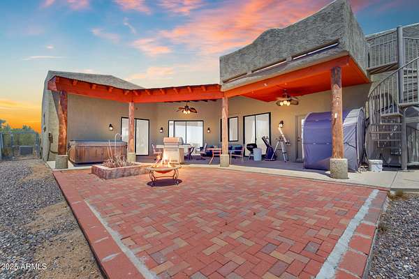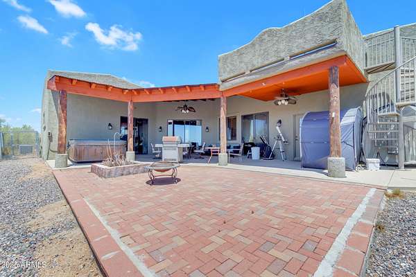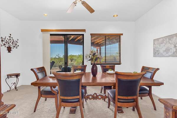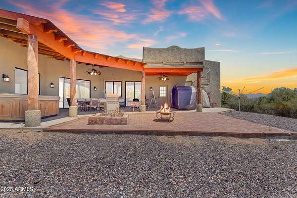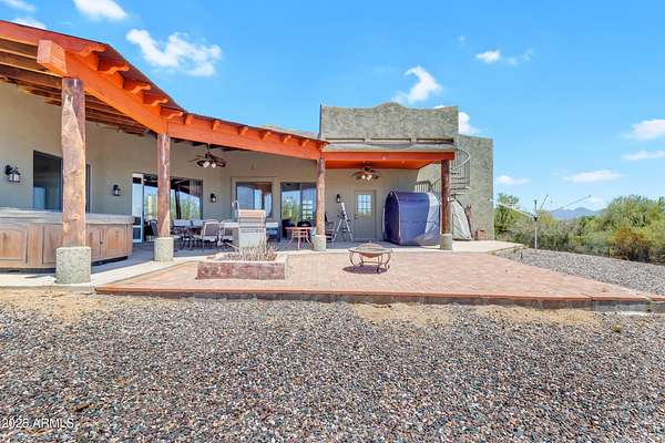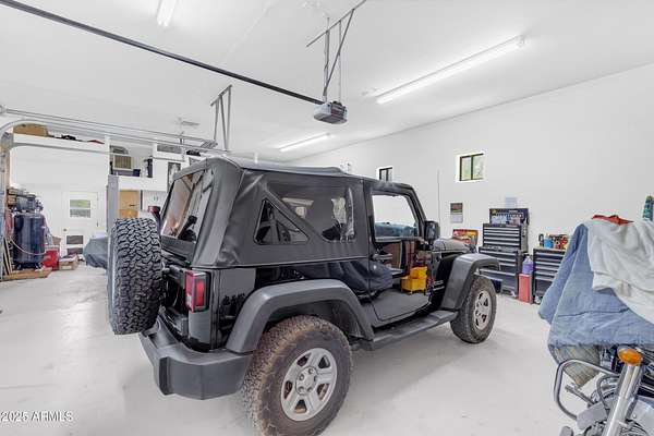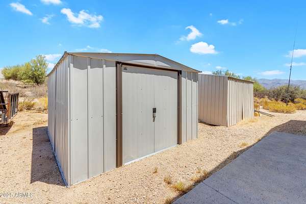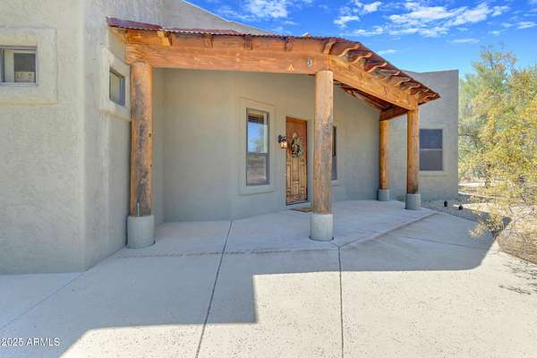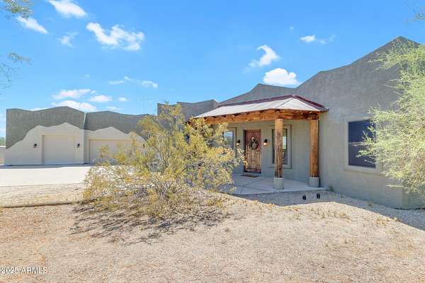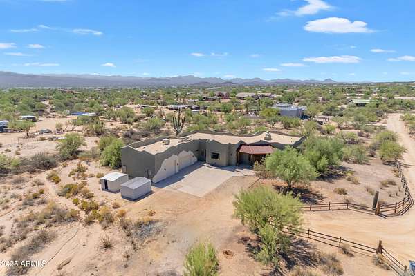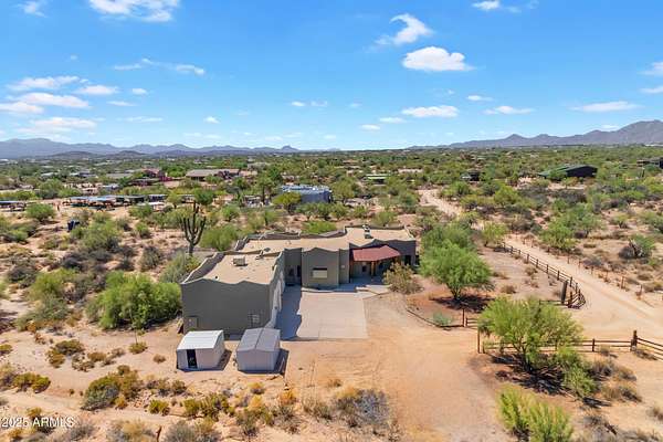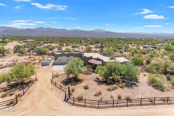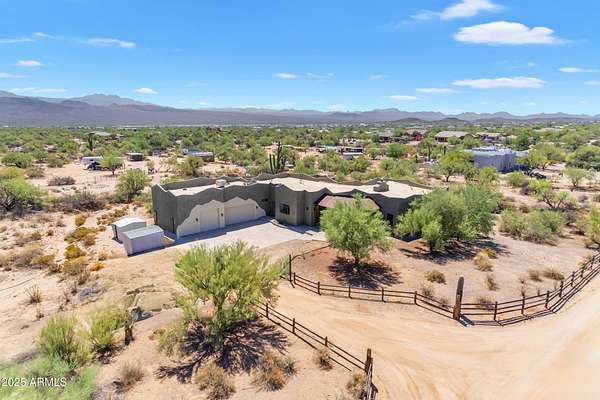 Welcome to your desert sanctuary! Situated on over 2.5 acres of pristine Arizona landscape, this horse property offers panoramic mountain views including a rooftop vista with views of Weaver's Needle, Four Peaks, Mazatzal Mountains, and Little Granite. Whether you're soaking in the sunset from the elevated deck or enjoying the peace and privacy of wide-open space, this property delivers the best of desert living. The home has been recently refreshed with new paint and carpet (Sept 2024), offering a clean slate to make it your own. A massive garage and workshop space provide room for toys, tools, and tack making it ideal for hobbyists, mechanics, or equestrian needs. Water access is future-proofed with a fully transferable right to the upcoming standpipe system, plus a 5,000-gallon storage tank already in place. There's also a shared well on the property for added flexibility. The backyard is fully enclosed with "No Climb" fencing complete with a snake-proof perimeter section for peace of mind. Bring your horses, your outdoor toys, your dreams, and your sense of adventure because this one has the space, the views, and the utility to do it all.