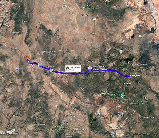 The location blends quiet rural living with practical access to essentials. A local water delivery service helps make off-grid living more convenient, and the town of Seligman provides basic amenities including groceries, gas, a post office, and small shops. You're also close to historic Route 66, adding character and charm to the area. Kingman is about an hour away for larger stores and services, and Las Vegas is roughly 2.5 hours away for major city access.