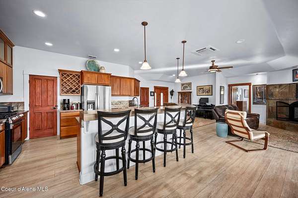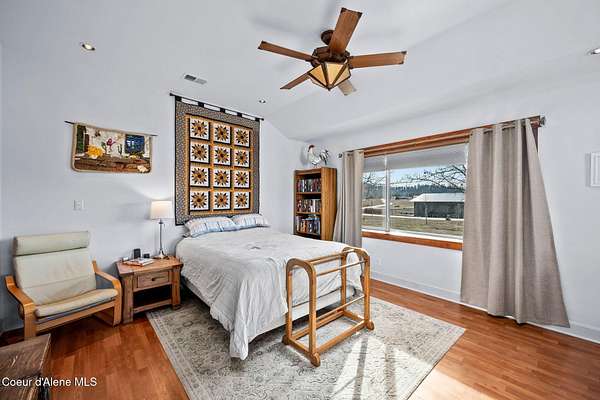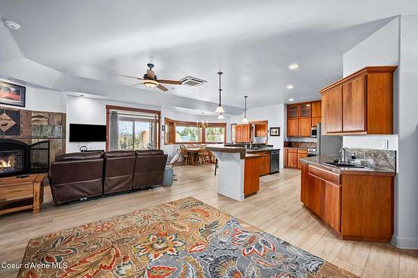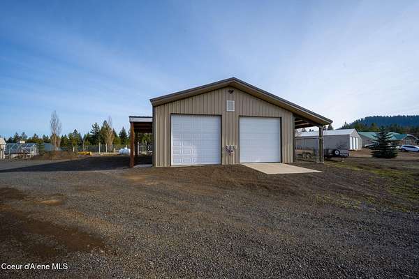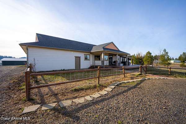 Nestled on 1.6 acres in the gated community of Sun Meadow Estates, this 2-bed, 2.5-bath home with spacious loft offers peaceful North Idaho living with forest and field views, minutes from Heyburn State Park and the Coeur d'Alene Casino. The open main level features a bright kitchen with cherry cabinetry, tile counters, breakfast bar, and gas fireplace. The primary suite includes a walk-in closet, dual vanities, walk-in shower, soaker tub, and built-in safe. The loft offers flexible living space with a half bath and kitchenette. A brand new 13.8 kW Tesla solar panel system and fiber optic internet provide modern efficiency and connectivity. Outside enjoy a 1,100 sqft shop with loft, heated chicken coop, fenced animal area, garden beds, fruit trees, and full RV hookup. Low HOA and private utilities.
