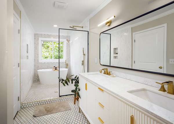 - Ceiling-High, Chandelier, Counters-Granite, Double Vanity, Freshly Painted, Glamour Bath, Kitchen Island, Open Floorplan, Pantry (interiorfeatures), Primary Bedroom Main, Primary Shower & Tub, Recessed Lighting, Smooth Ceiling, Tile Shower, Tub-Soaking, Walk-In Closet(s)